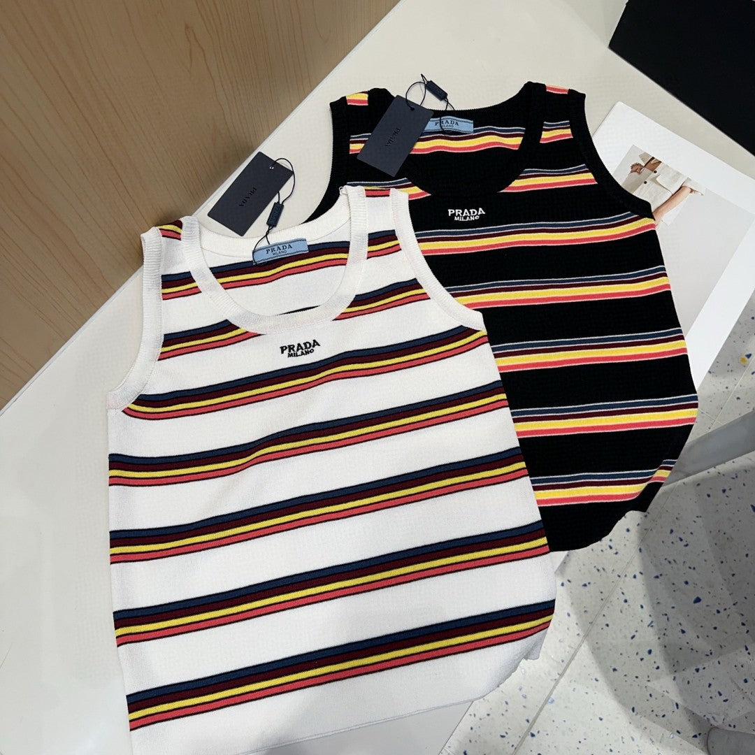 STRIPED TANK TOP 627701 IN BLACK MIX MULTICOLR COTTON RIBBED