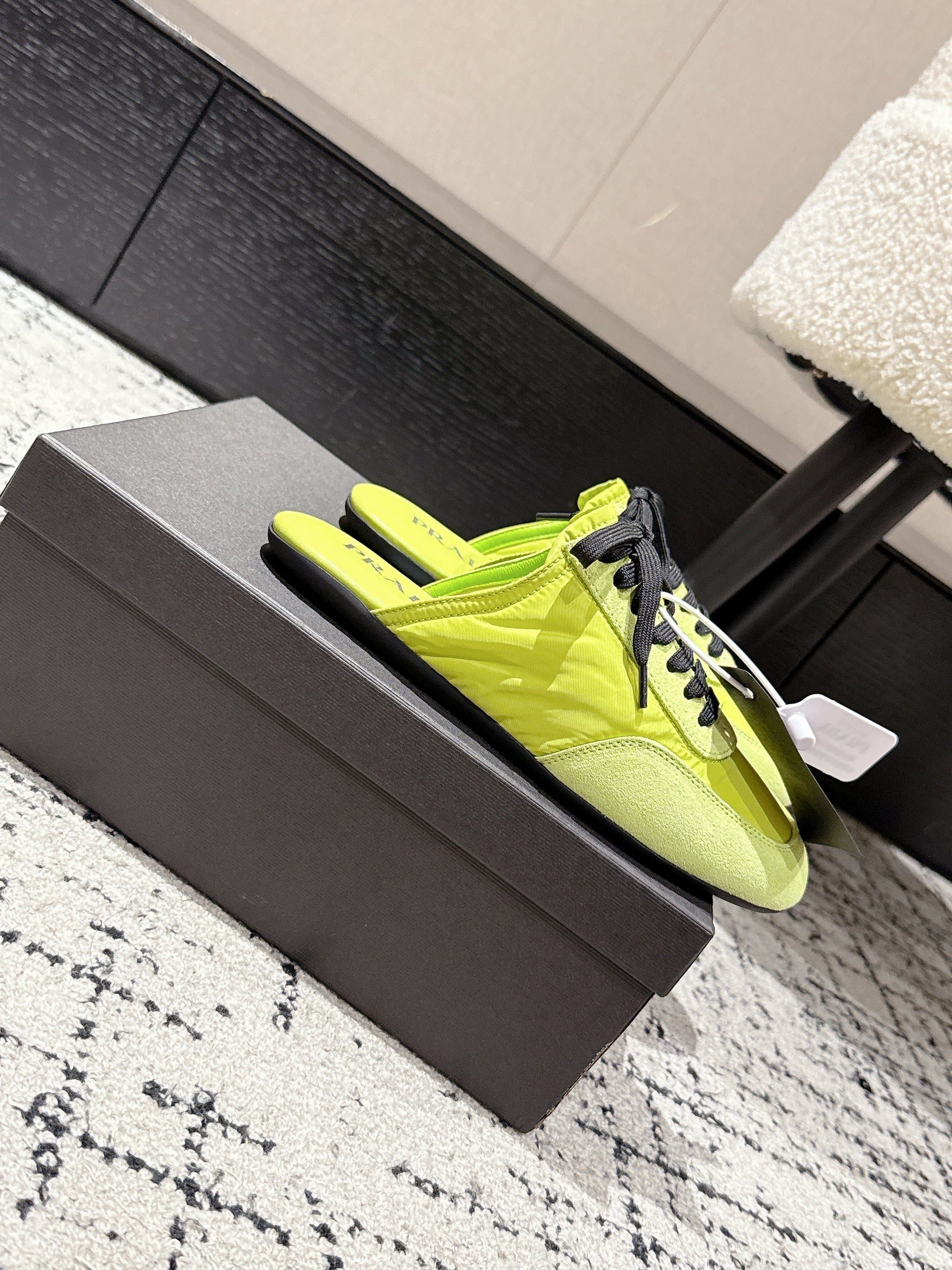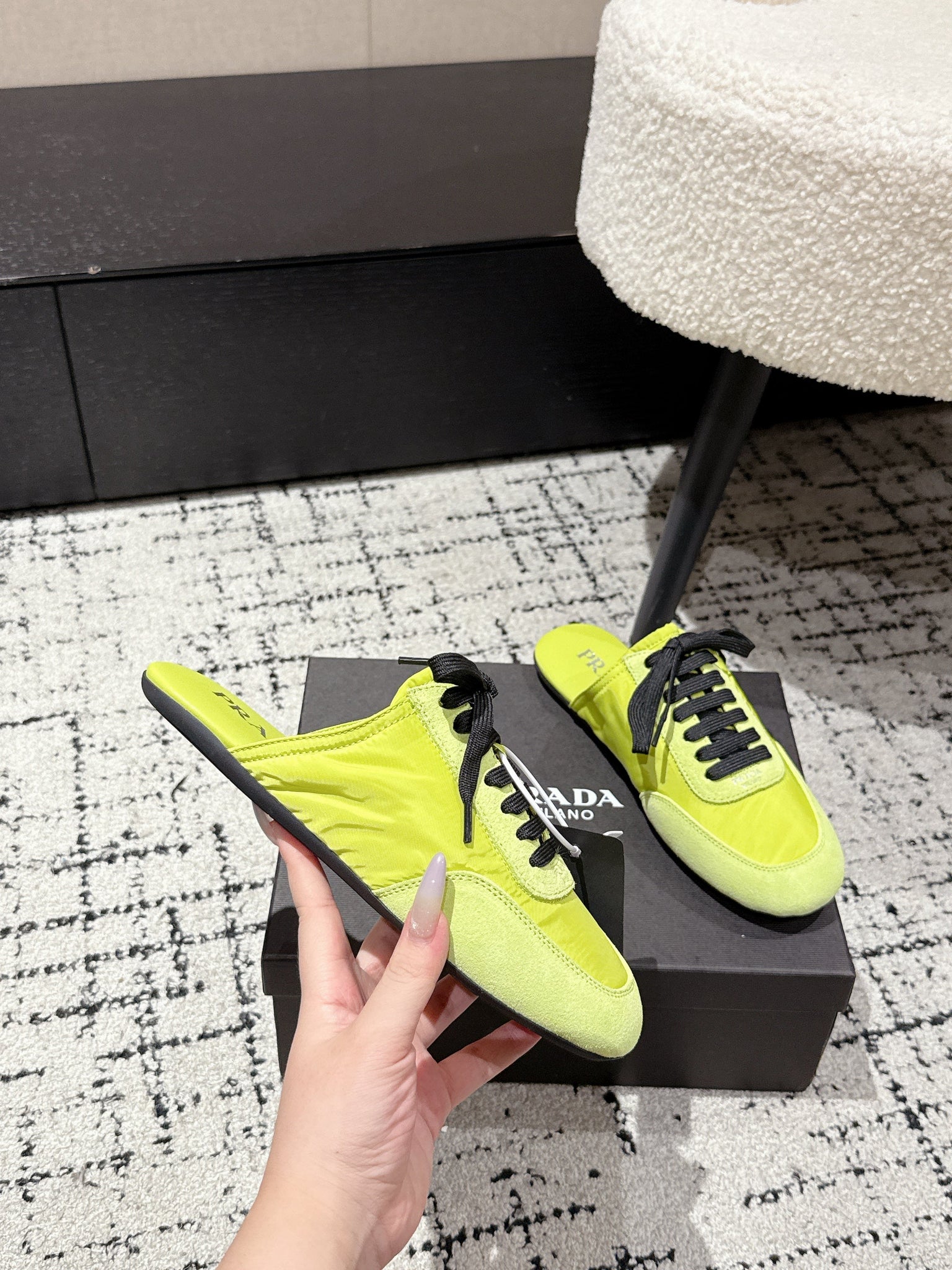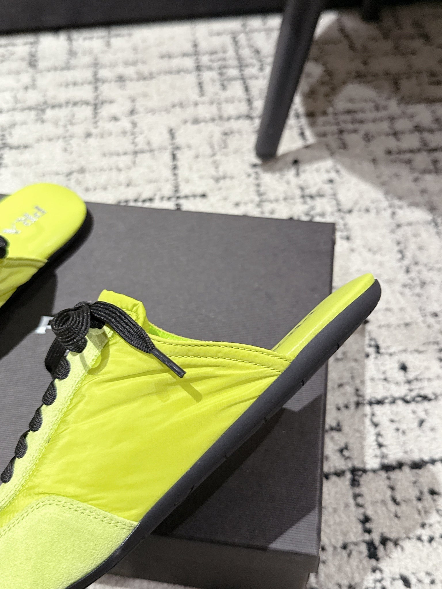 PRADA 25S DEXUN MULE IN LIME GREEN SUEDE LEATHER