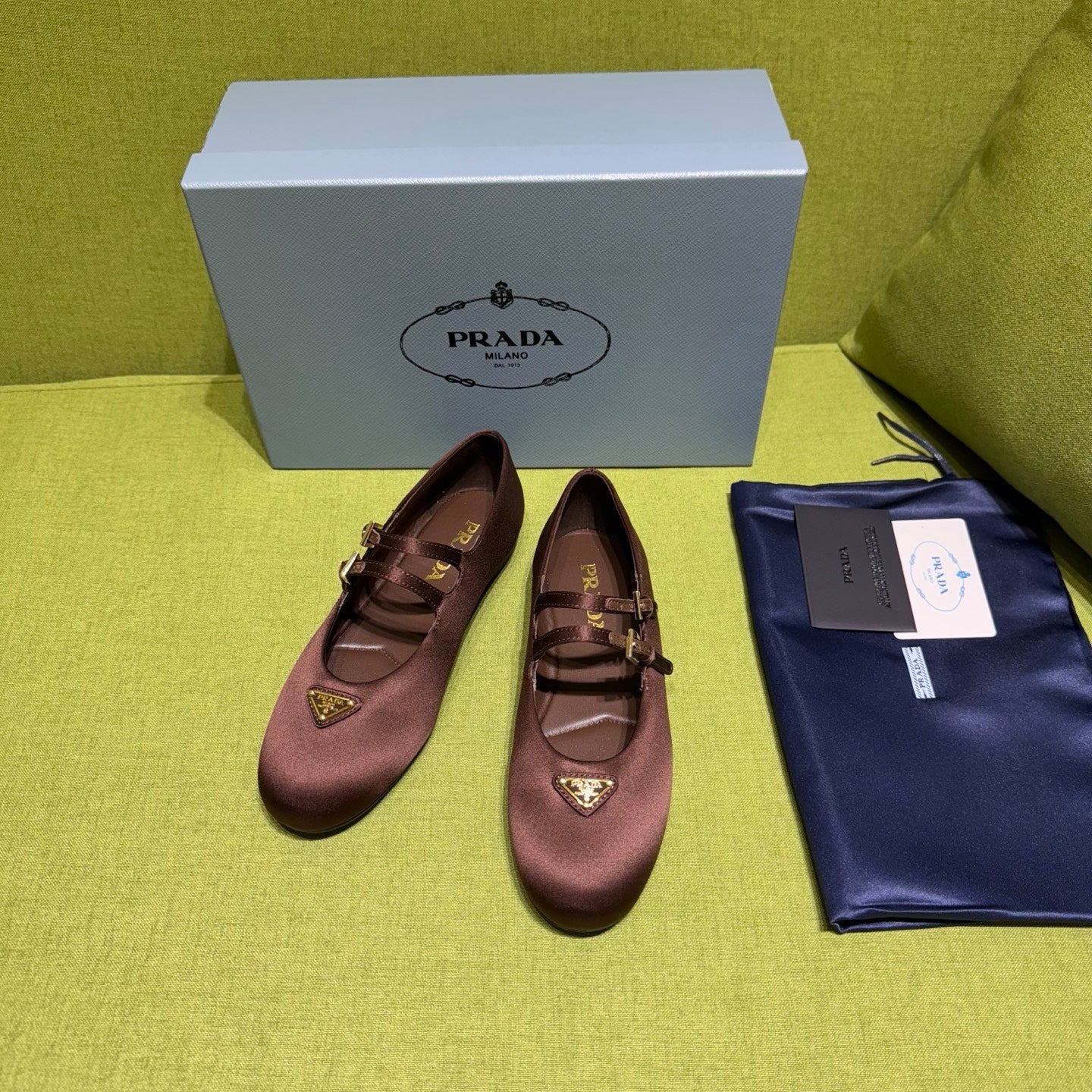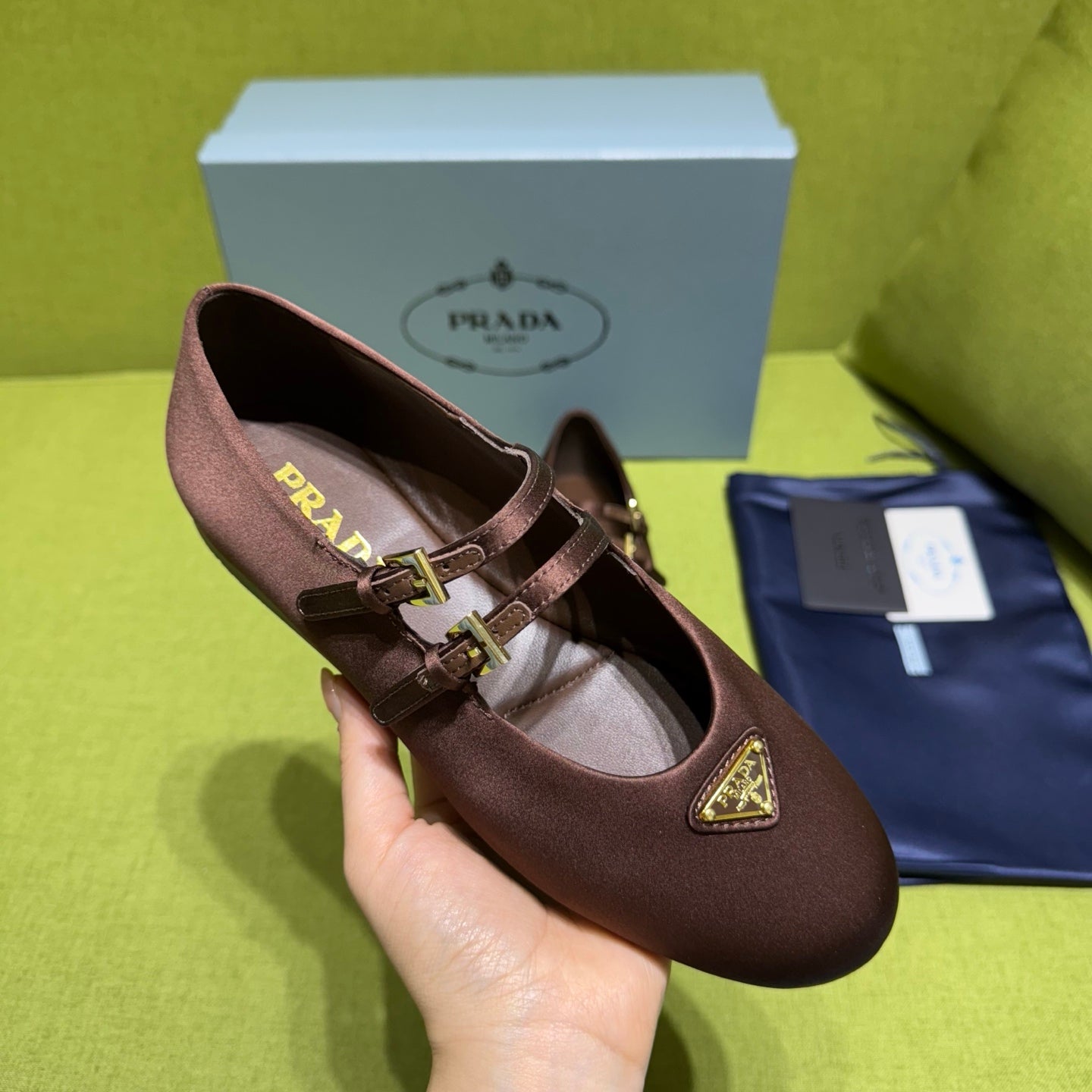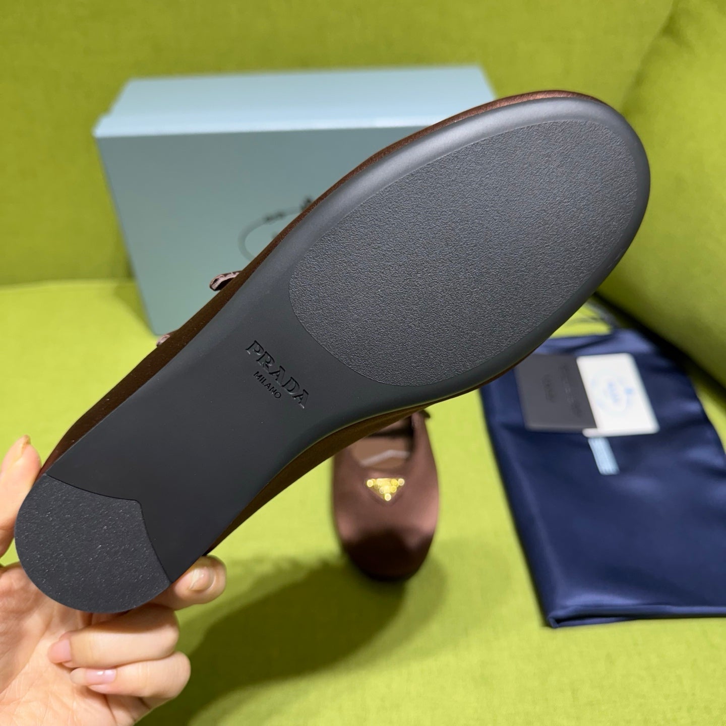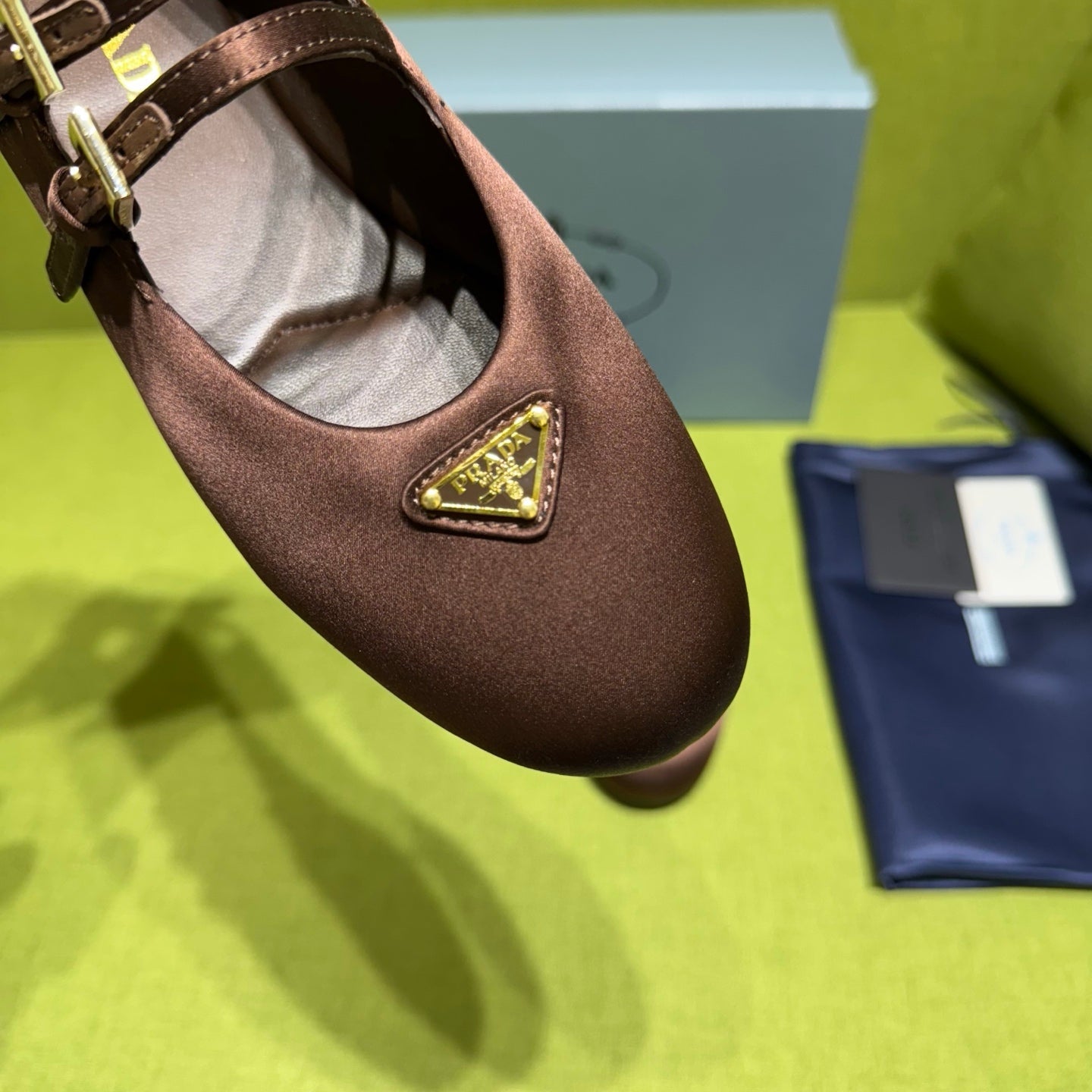 PRADA 25S MARY JANE BALLET FLATS IN DEEP BURGUNDY BROWN SATIN