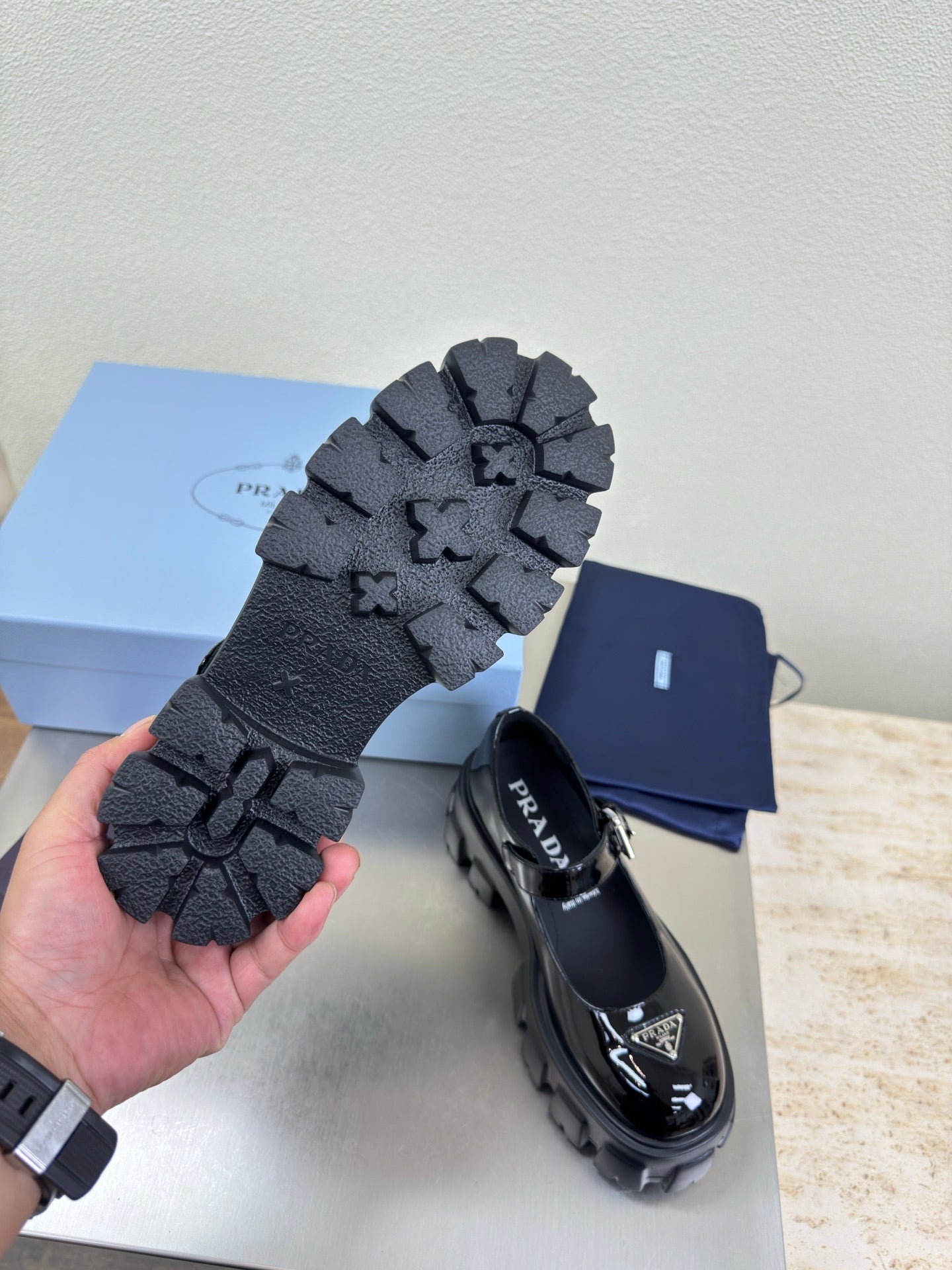 PRADA 25S PLATFORM MARY JANE SHOES IN BLACK GLOSSY CALFSKIN STYLE 2