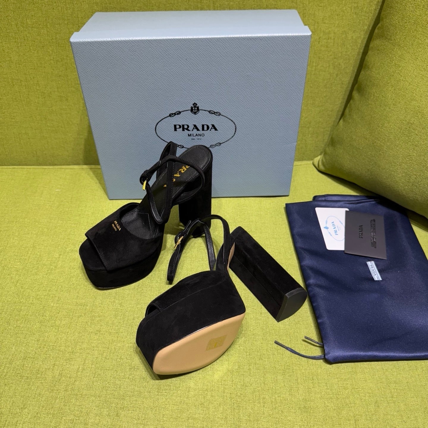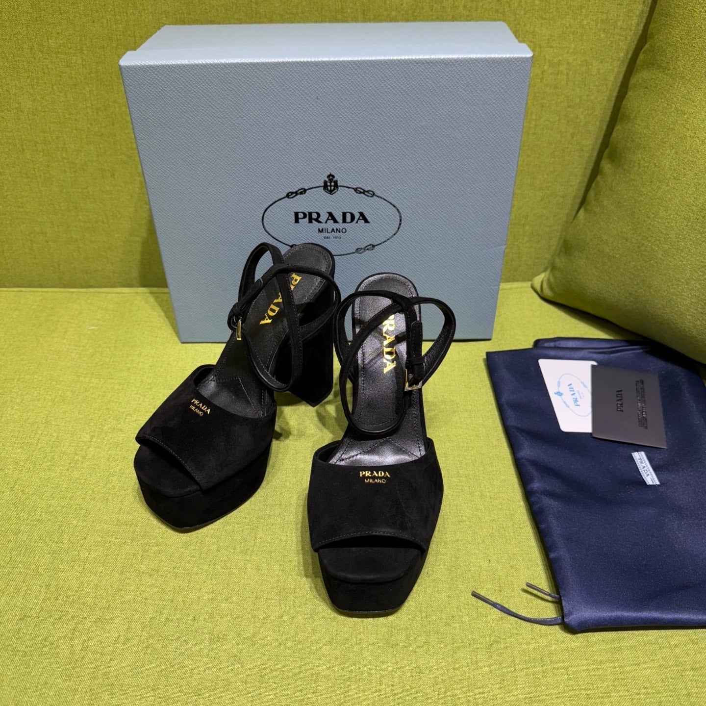 PRADA 25S HIGH-HEEL SANDALS 140 MM IN BLACK SUEDE STYLE 4