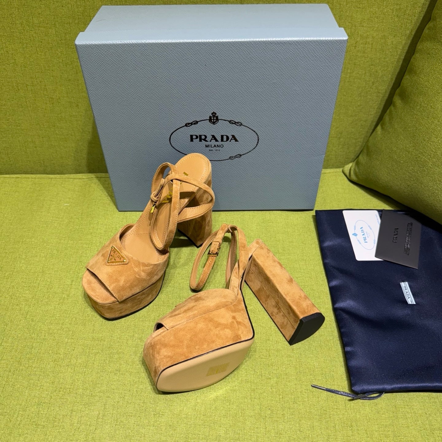 PRADA 25S HIGH-HEEL SANDALS 140 MM IN CARAMEL BROWN SUEDE STYLE 2