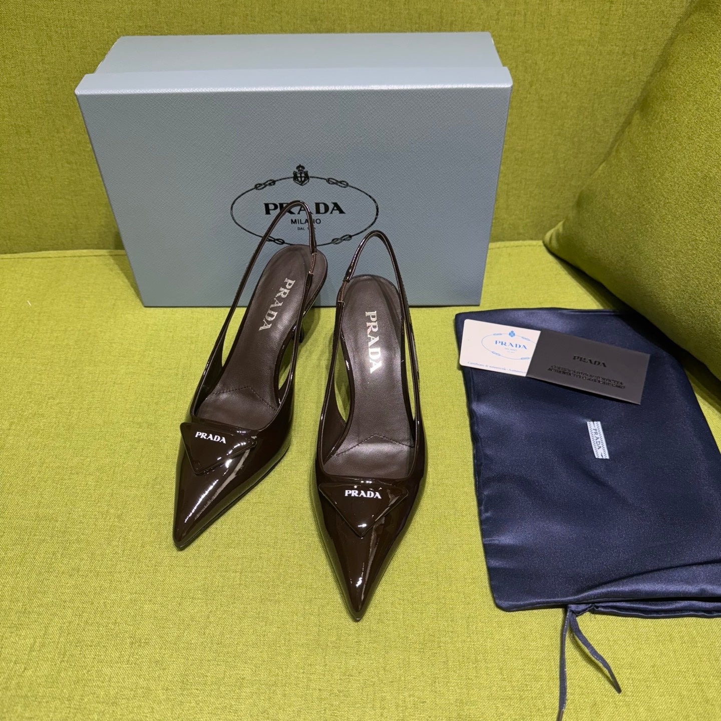 PRADA 25S SLINGBACK HIGH HEELS 75 MM IN DARK RED BROWN GLOSSY CALFSKIN