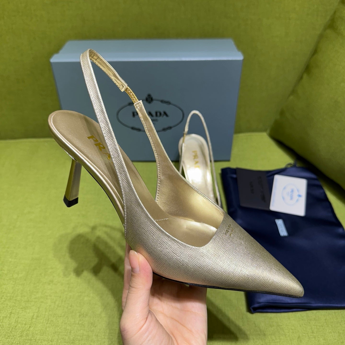 PRADA 25S SLINGBACK HIGH HEELS 75 MM IN GOLD SHEEPSKIN