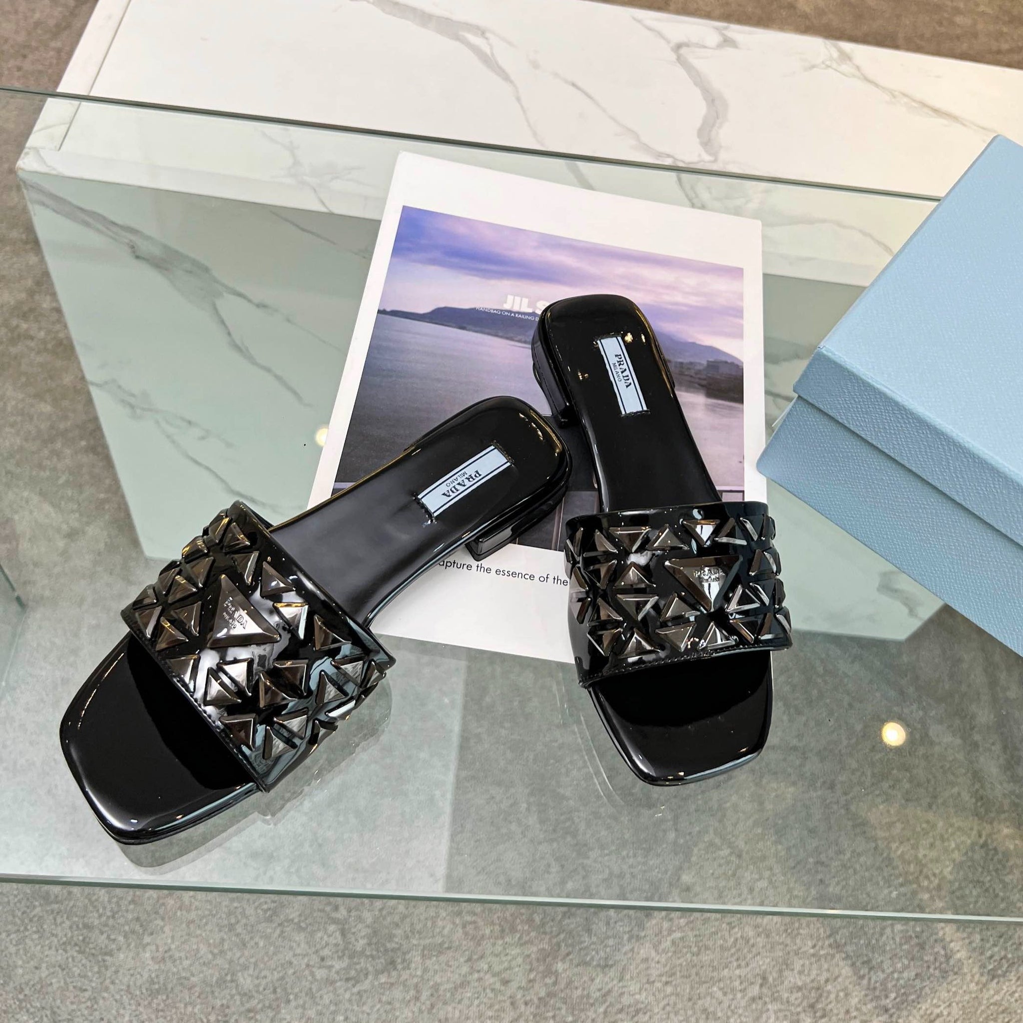 PRA EMBROIDERED SLIDES FLAT BLACK CALFSKIN