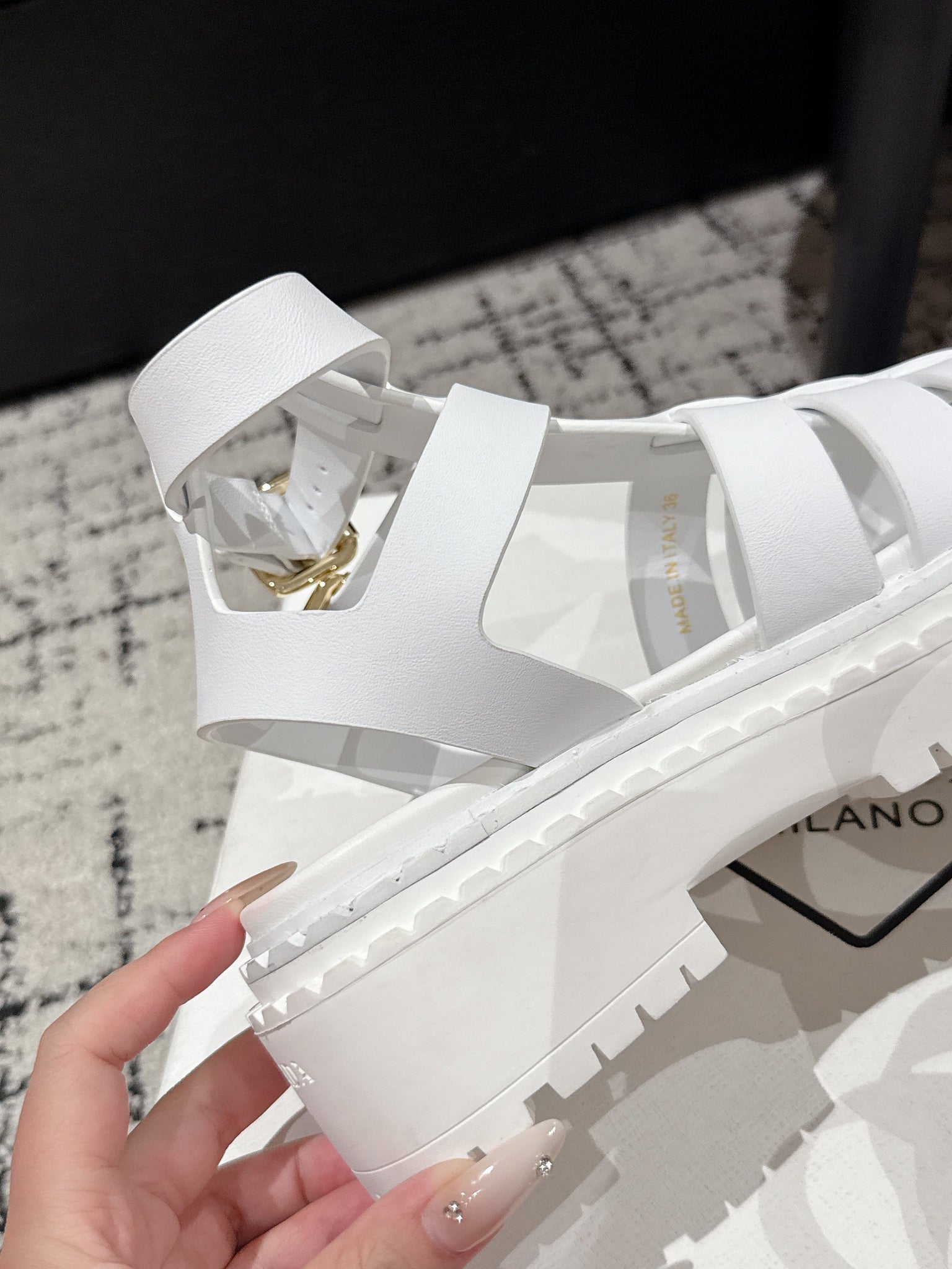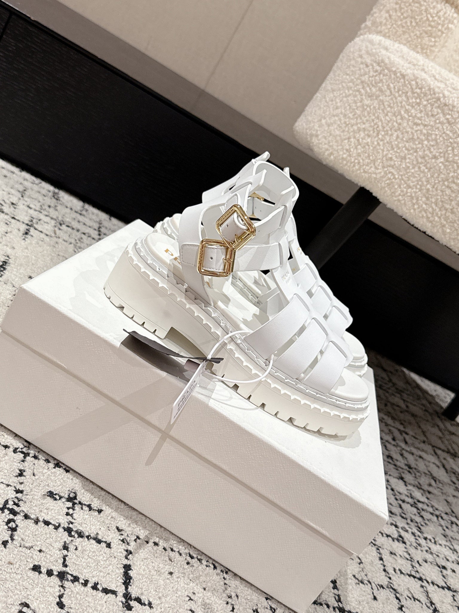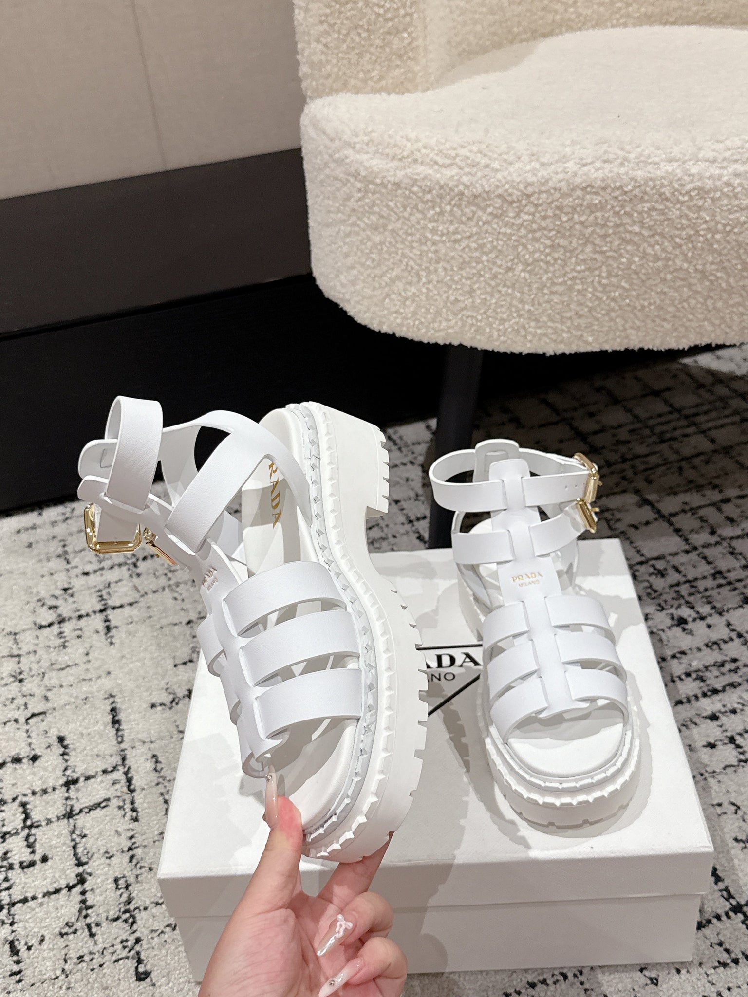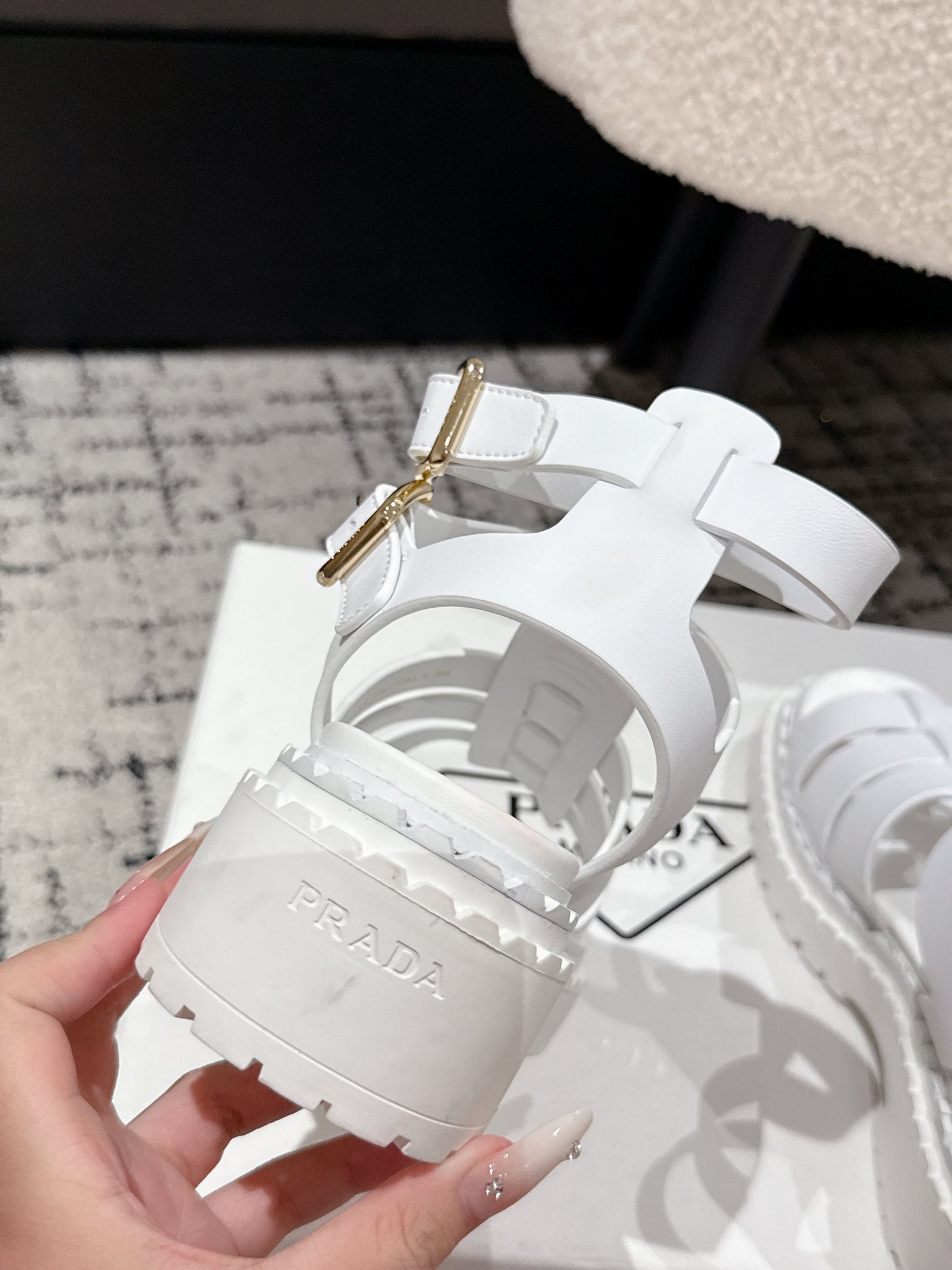 PRADA 25S HIGH TOP OPEN TOE FISHERMAN SANDALS IN WHITE CALFSKIN