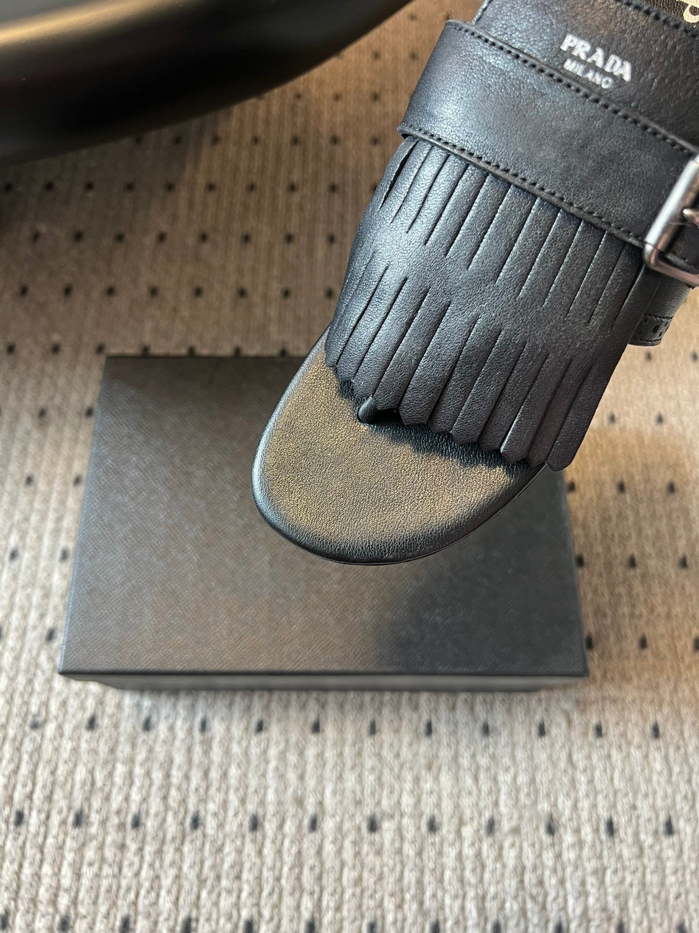 PRADA 25S SHUFFLE LEATHER THONG SANDALS IN BLACK CALFSKIN
