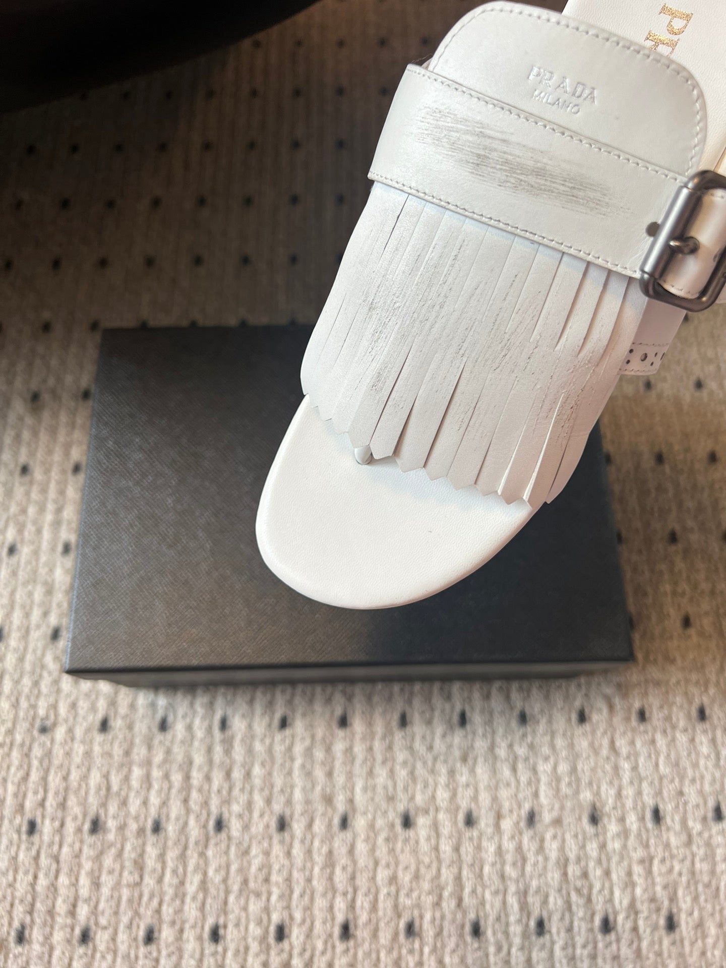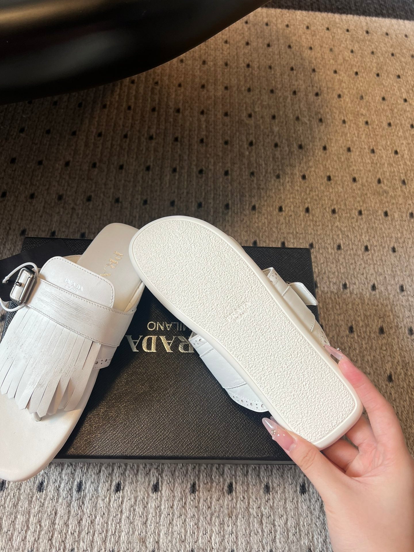 PRADA 25S SHUFFLE LEATHER THONG SANDALS IN IVORY CALFSKIN