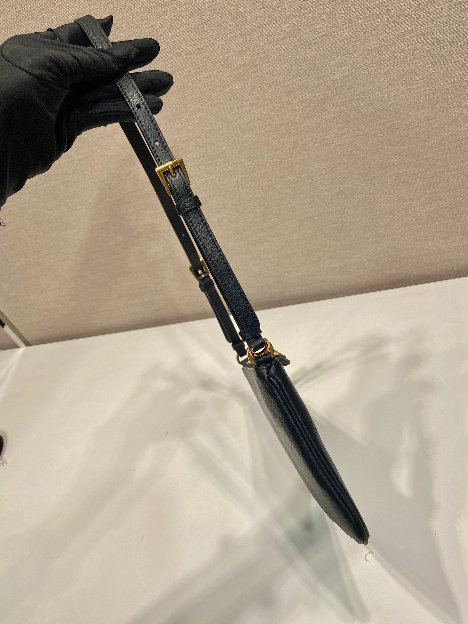 TRIANGLE LOGO SHOULDER BAG 24 IN BLACK SMOOTH CALFSKIN