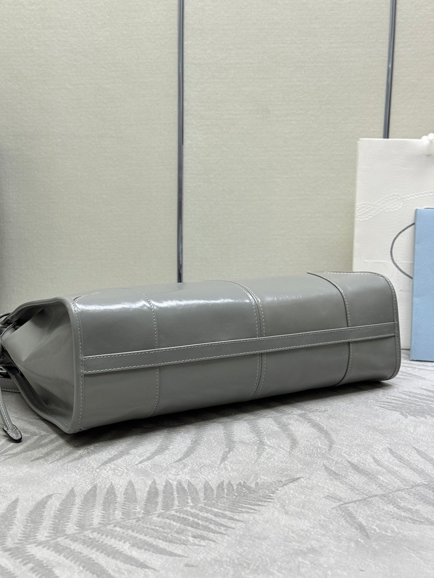 PRADA 25S BONNIE LARGE HANDBAG 38 IN GRAY GLOSSY CALFSKIN GOLD HARDWARE