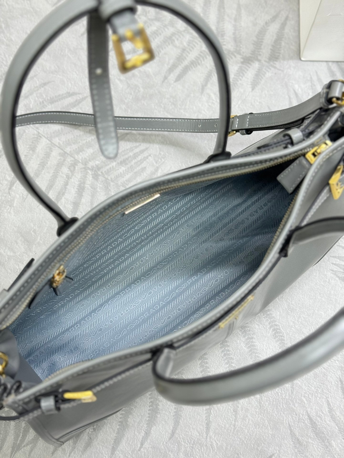 PRADA 25S BONNIE LARGE HANDBAG 38 IN GRAY GLOSSY CALFSKIN GOLD HARDWRE