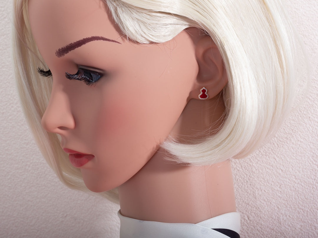 WULU CARNELIAN DIAMOND PINK GOLD STUD EARRINGS