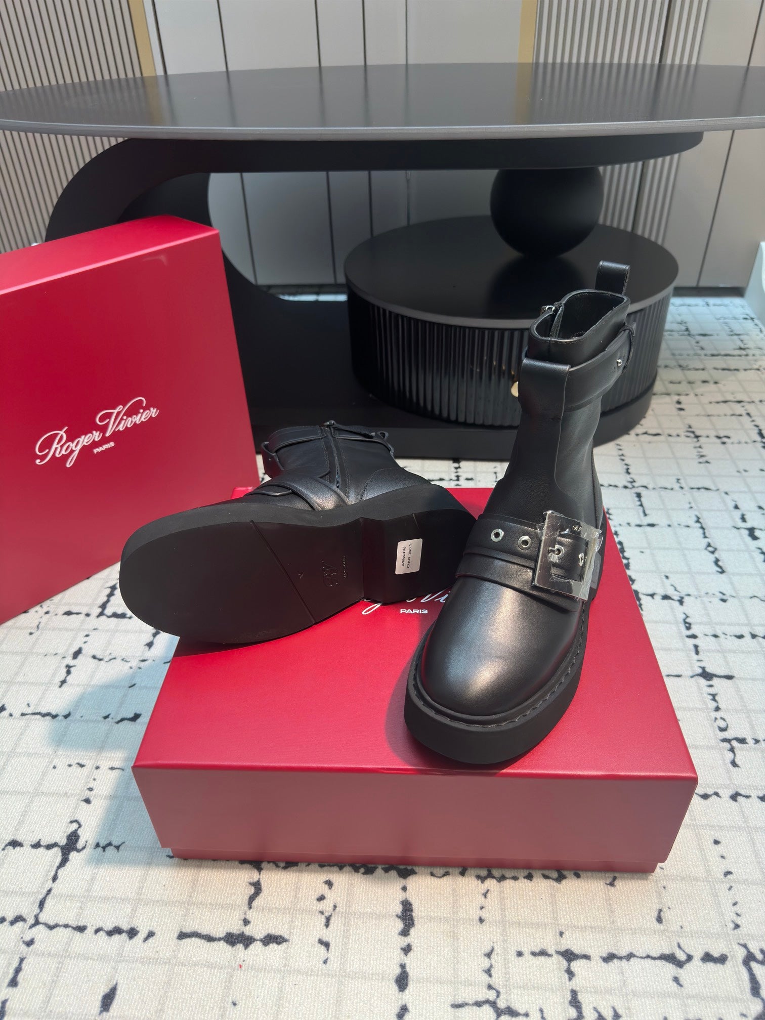 VIV' RANGERS BIKER BOOTIES IN BLACK CALFSKIN WITH METAL BUCKLE