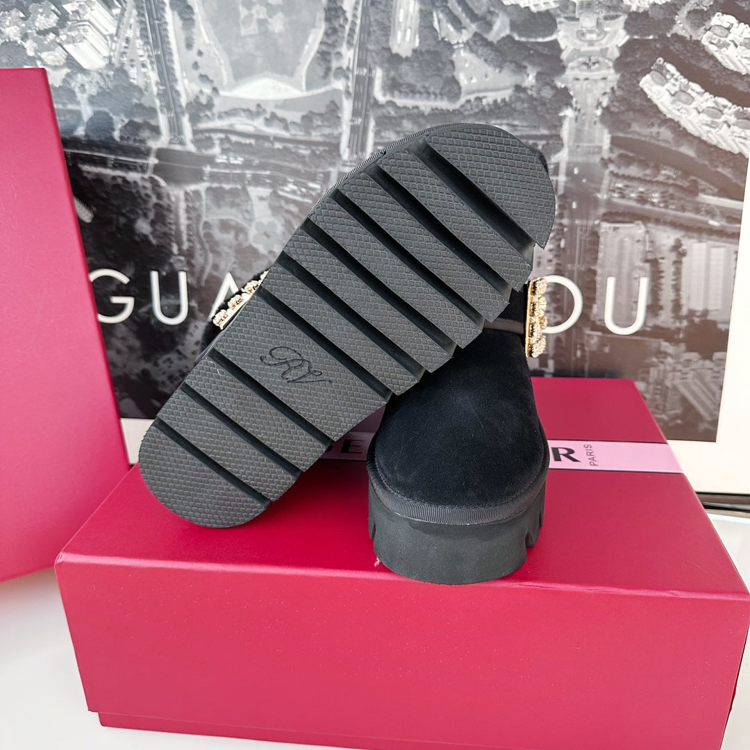 VIV' WINTER FUR STRASS BUCKLE ANKLE BOOTS IN BLACK SUEDE
