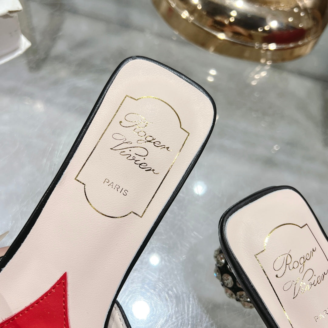 CRYSTAL HEEL MULE IN BLACK CALFSKIN