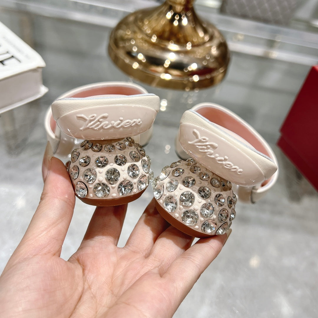 CRYSTAL HEEL MULE IN WHITE CALFSKIN