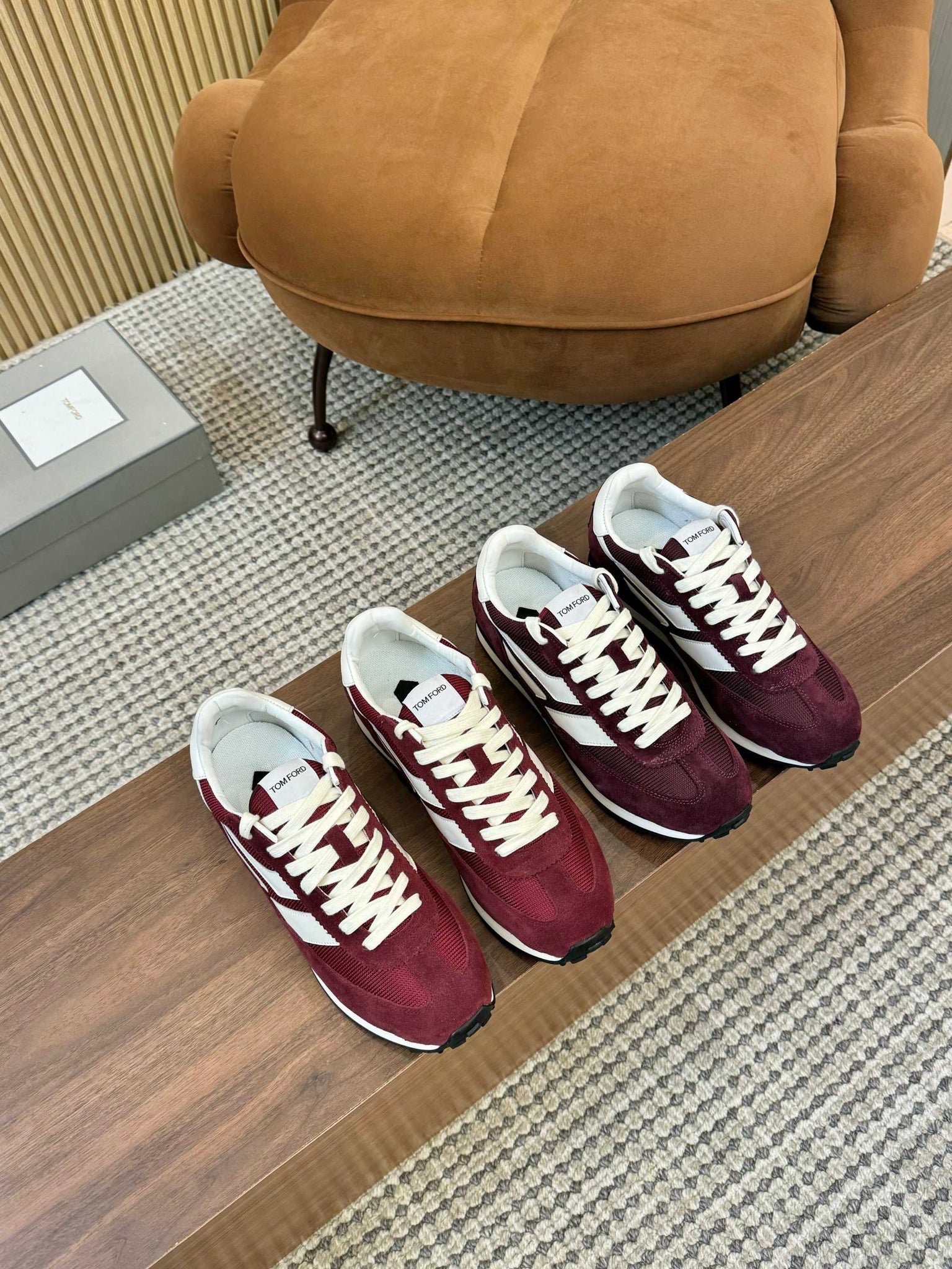 TOM FORD SNEAKERS IN DARK BURGUNDY RED MESH AND SUEDE 434241