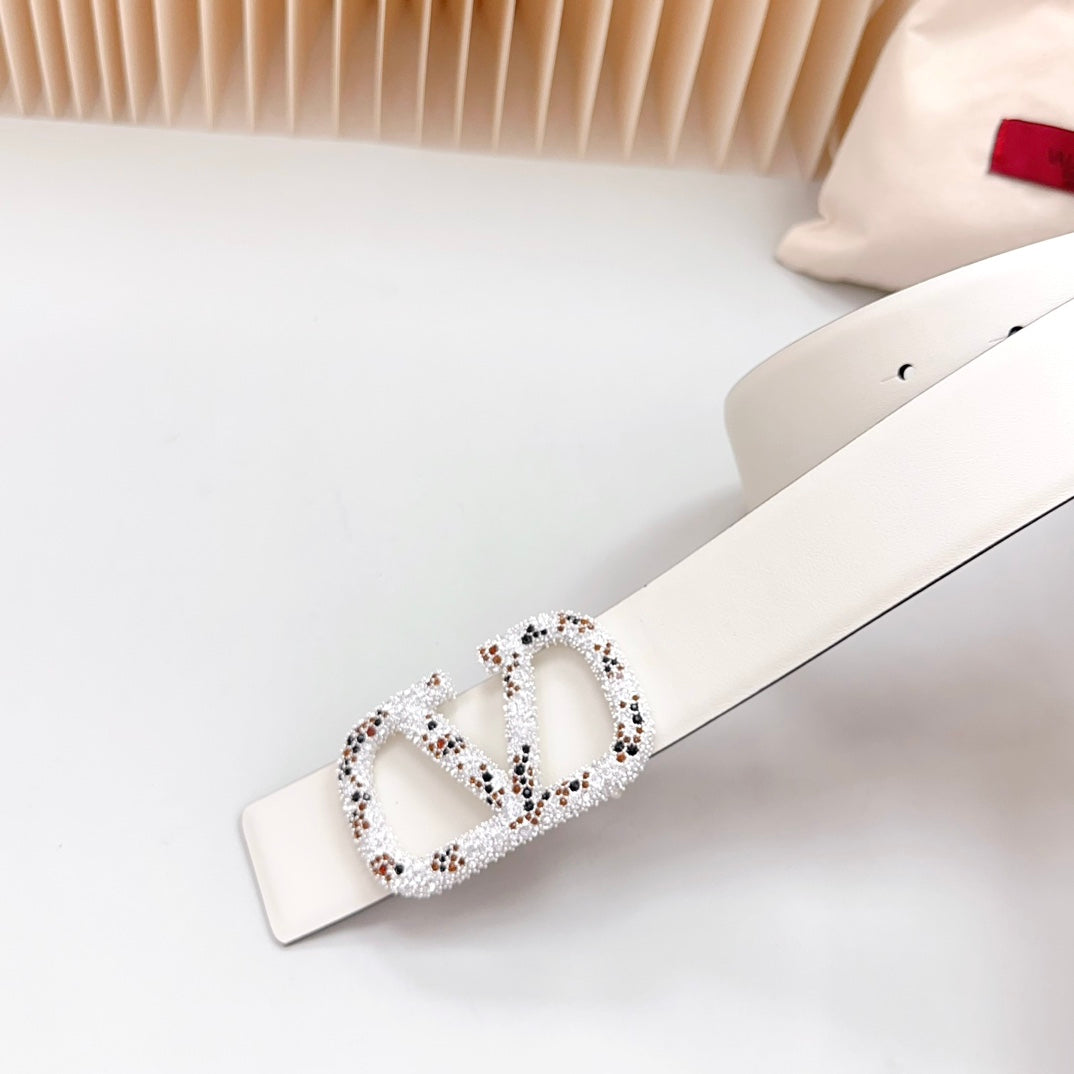 Vlogo Brown Black White Stone Silver Buckle Belt 40mm Black White Leather