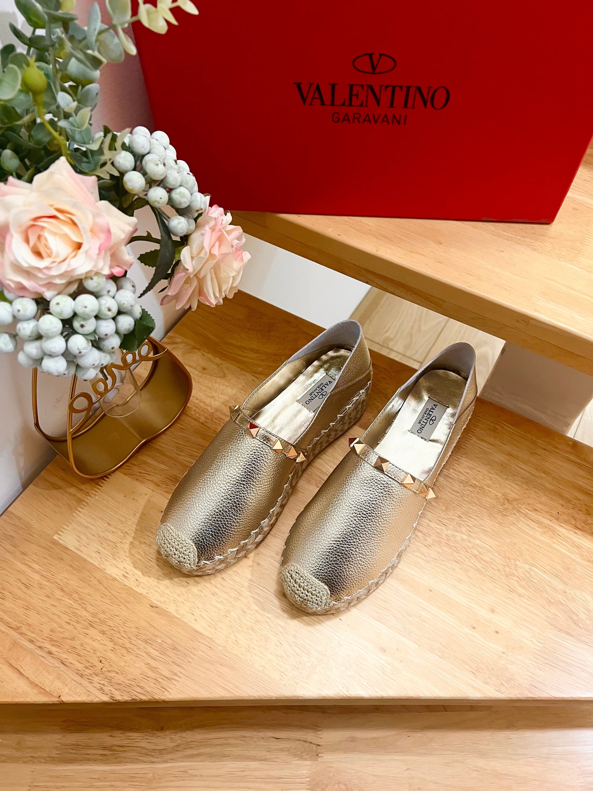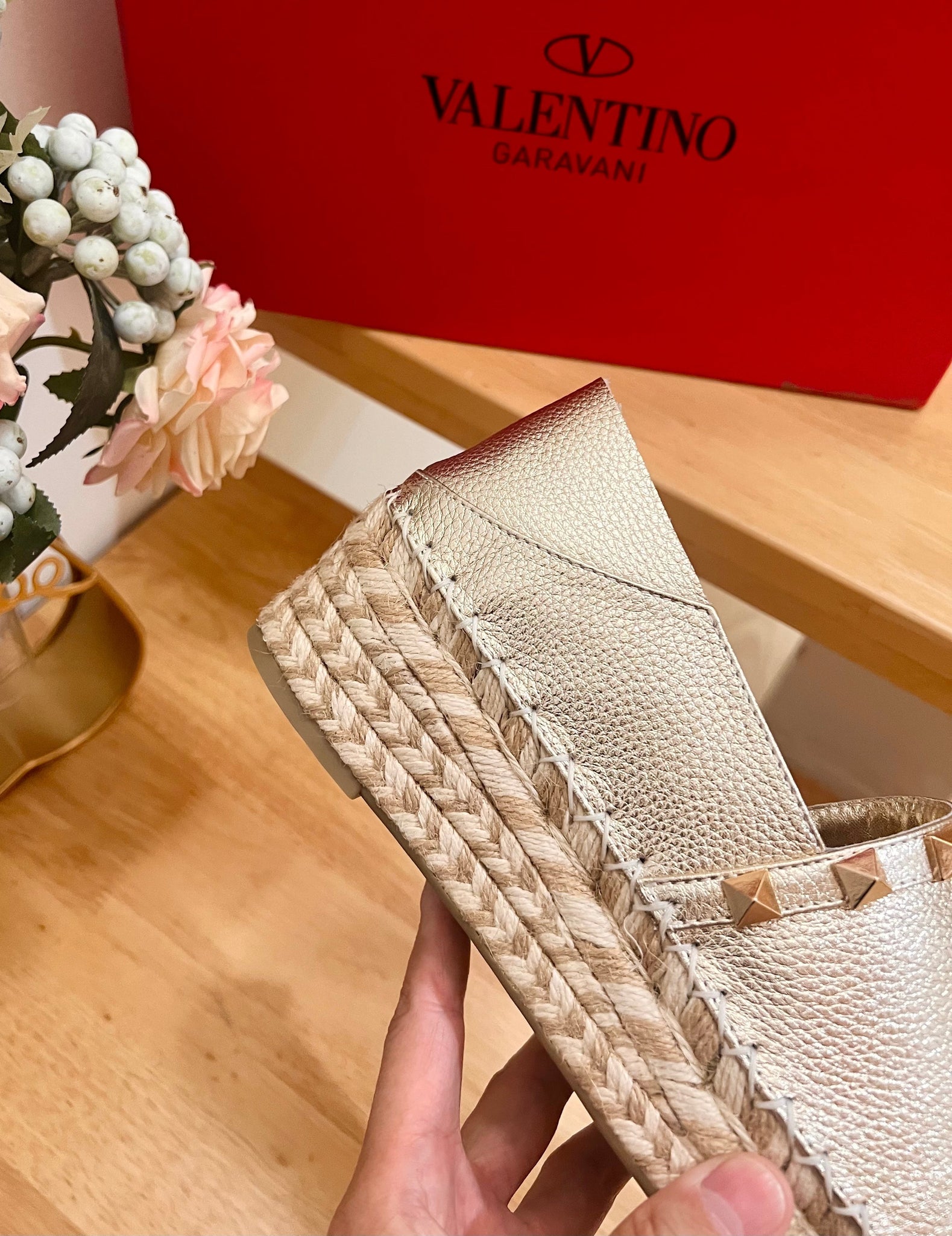 FLAT ESPADRILLE IN SILVER CALFSKIN 2 CM WITH STUDS