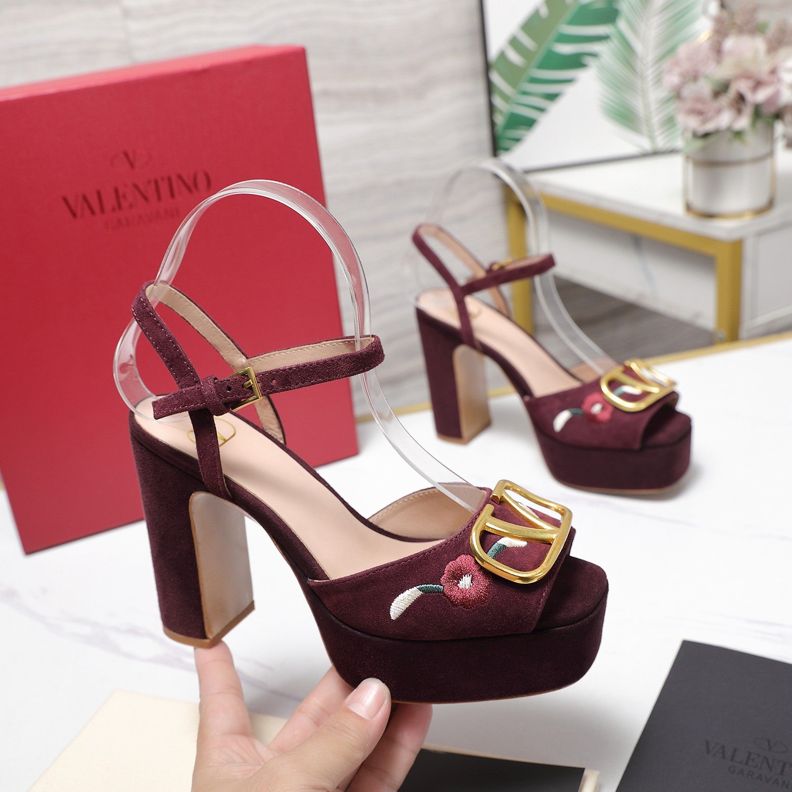 VALENTINO 25S GARAVANI VLOGO SIGNATURE HIGH-HEEL SANDALS 110 MM IN DARK RED SUEDE