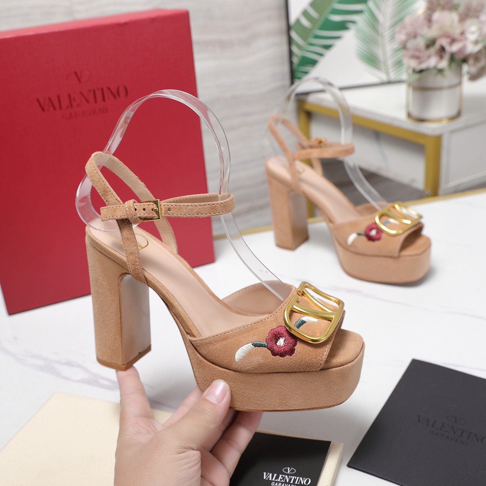 VALENTINO 25S GARAVANI VLOGO SIGNATURE HIGH-HEEL SANDALS 110 MM IN WARM BEIGE SUEDE