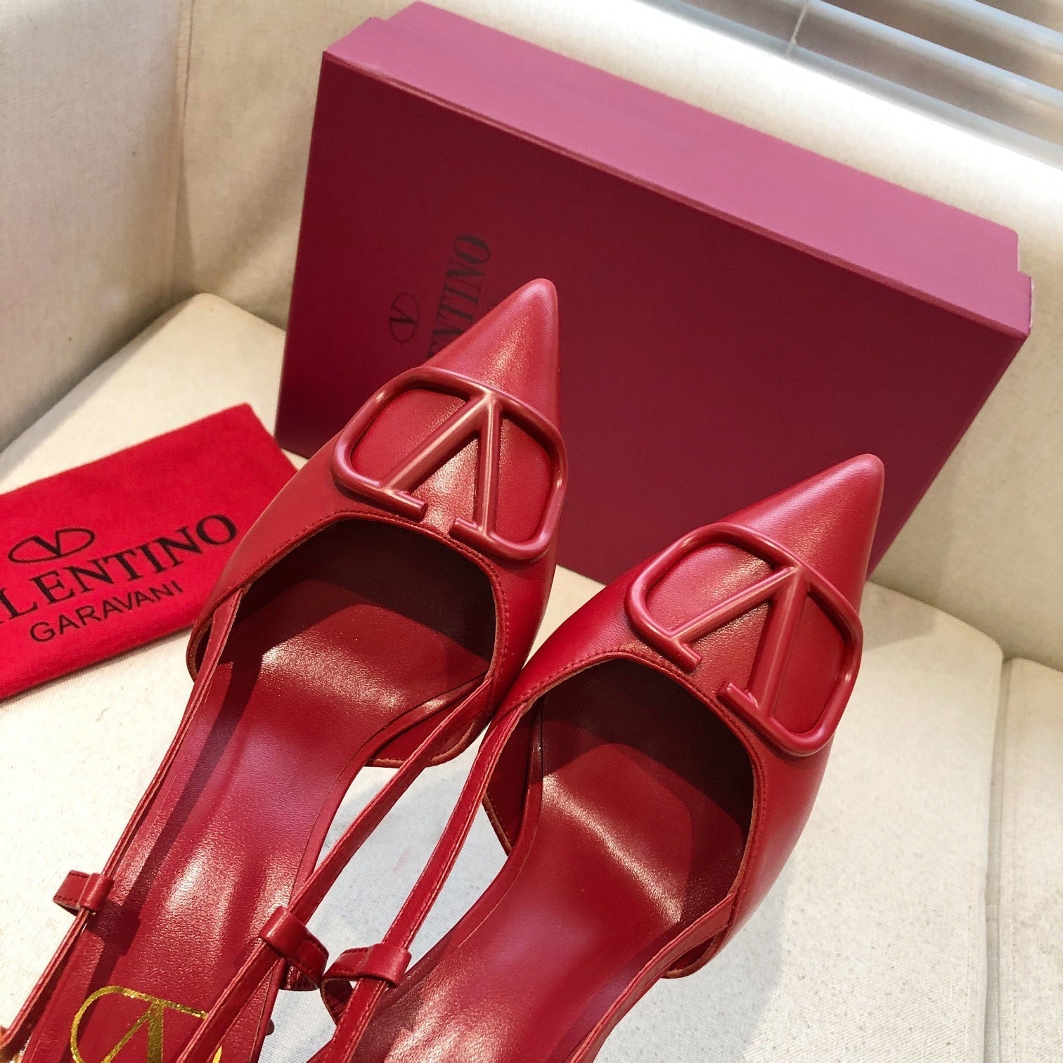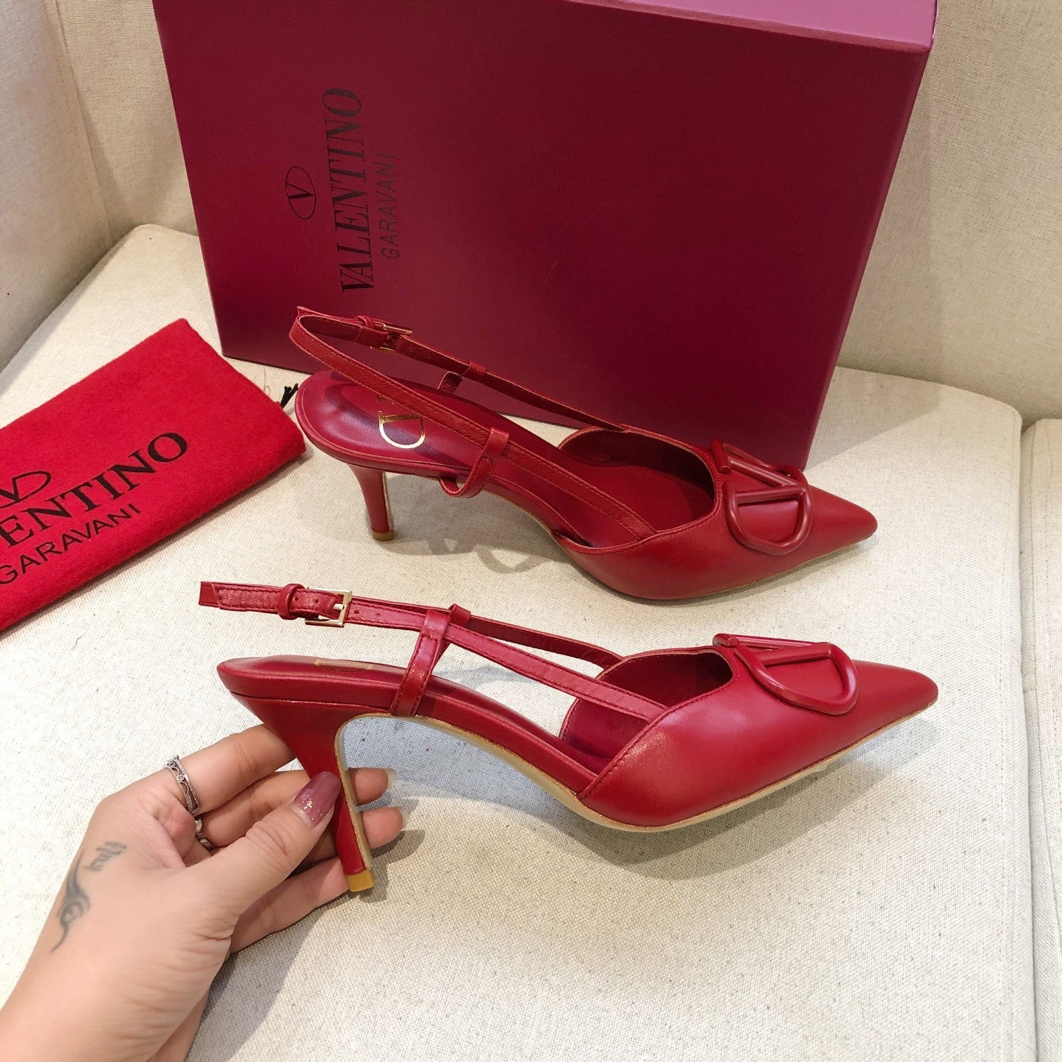 VLOGO SIGNATURE CHERRY RED CALFSKIN HIGH SLINGBACK PUMP 7 CM