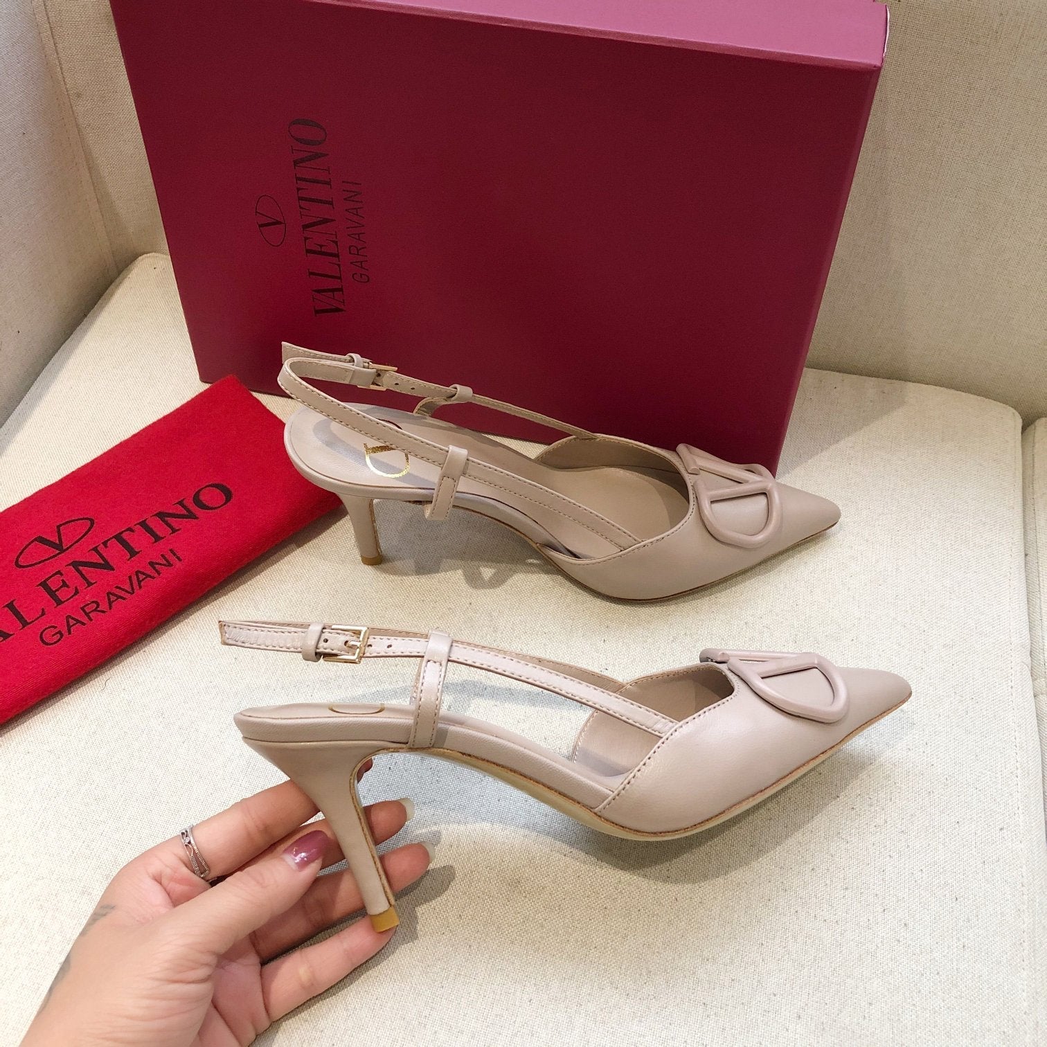 VLOGO SIGNATURE LIGHT PINK CALFSKIN HIGH SLINGBACK PUMP 7 CM