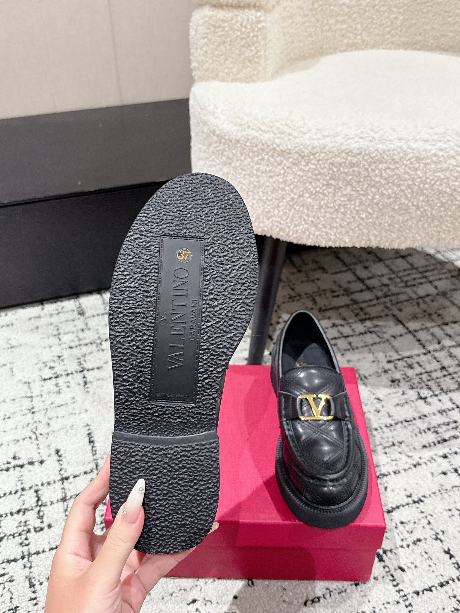VLTN LOAFER 25S IN MATTE BLACK LEATHER WITH GOLD HARDWARE