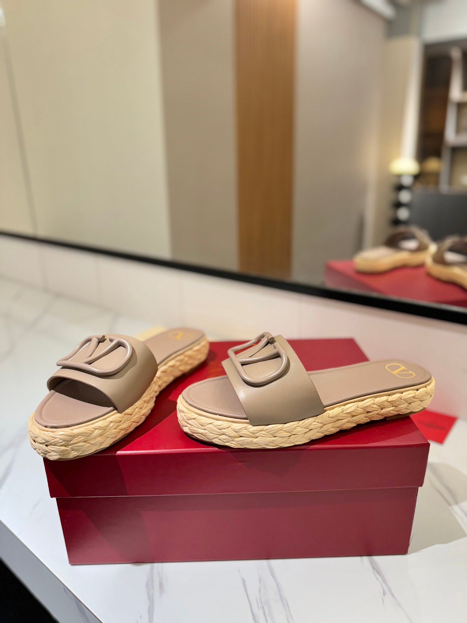 VLTN ESPADRILLE SLIDES 25S IN BEIGE BROWN LAMBSKIN STYLE 10