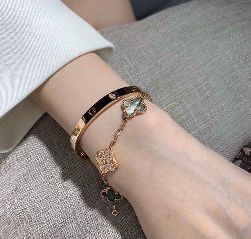 CLOVER BRACELET 5 MOTIF MOP AND DIAMOND