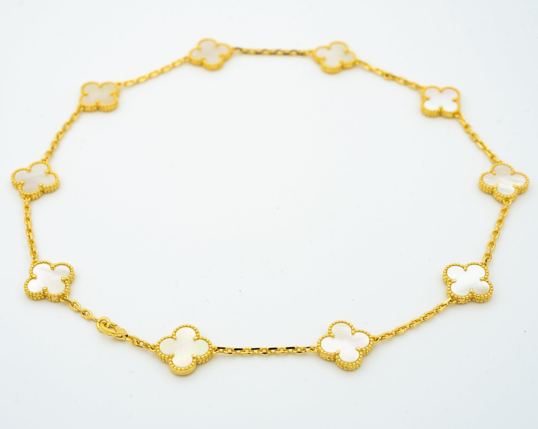 VINTAGE WHITE MOP NECKLACE 10 MOTIFS GOLD