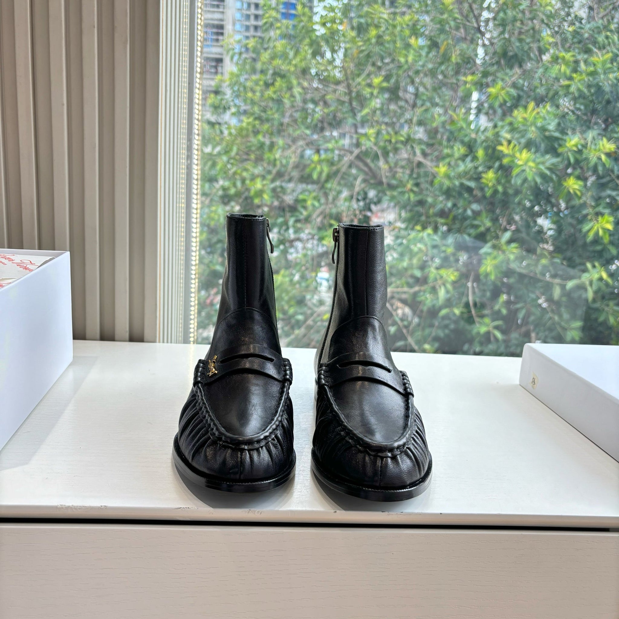 YSL 25S ANKLE FLAT BOOTS IN BLACK LAMBSKIN WITH SIDE ZIPPER