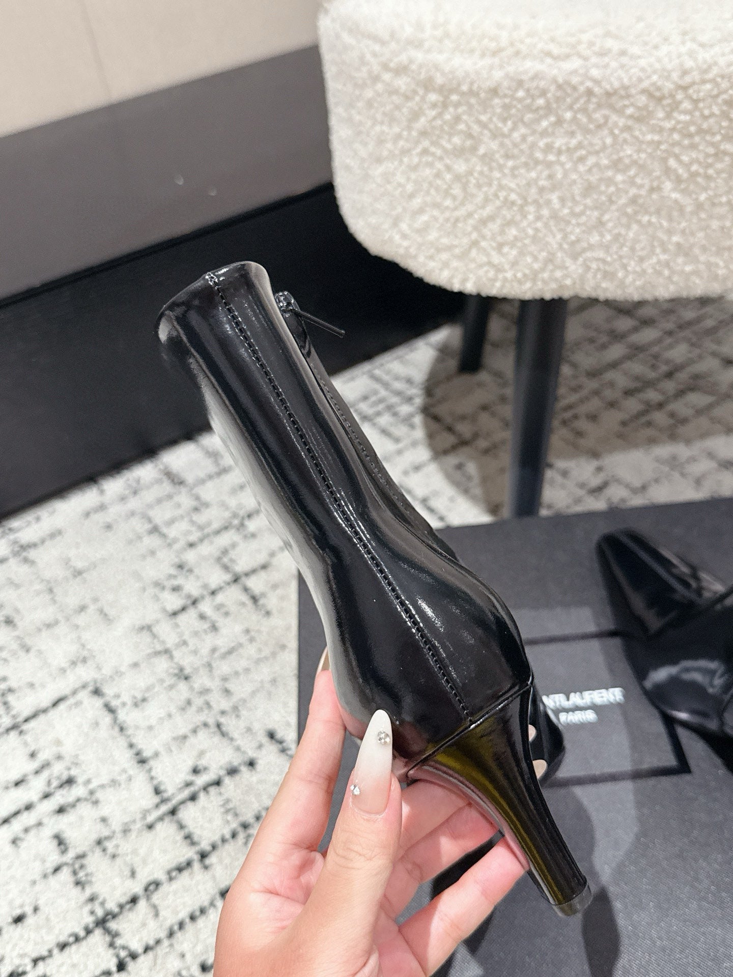 YSL 25S HEELED ANKLE BOOTS 70 MM IN BLACK LAMBSKIN