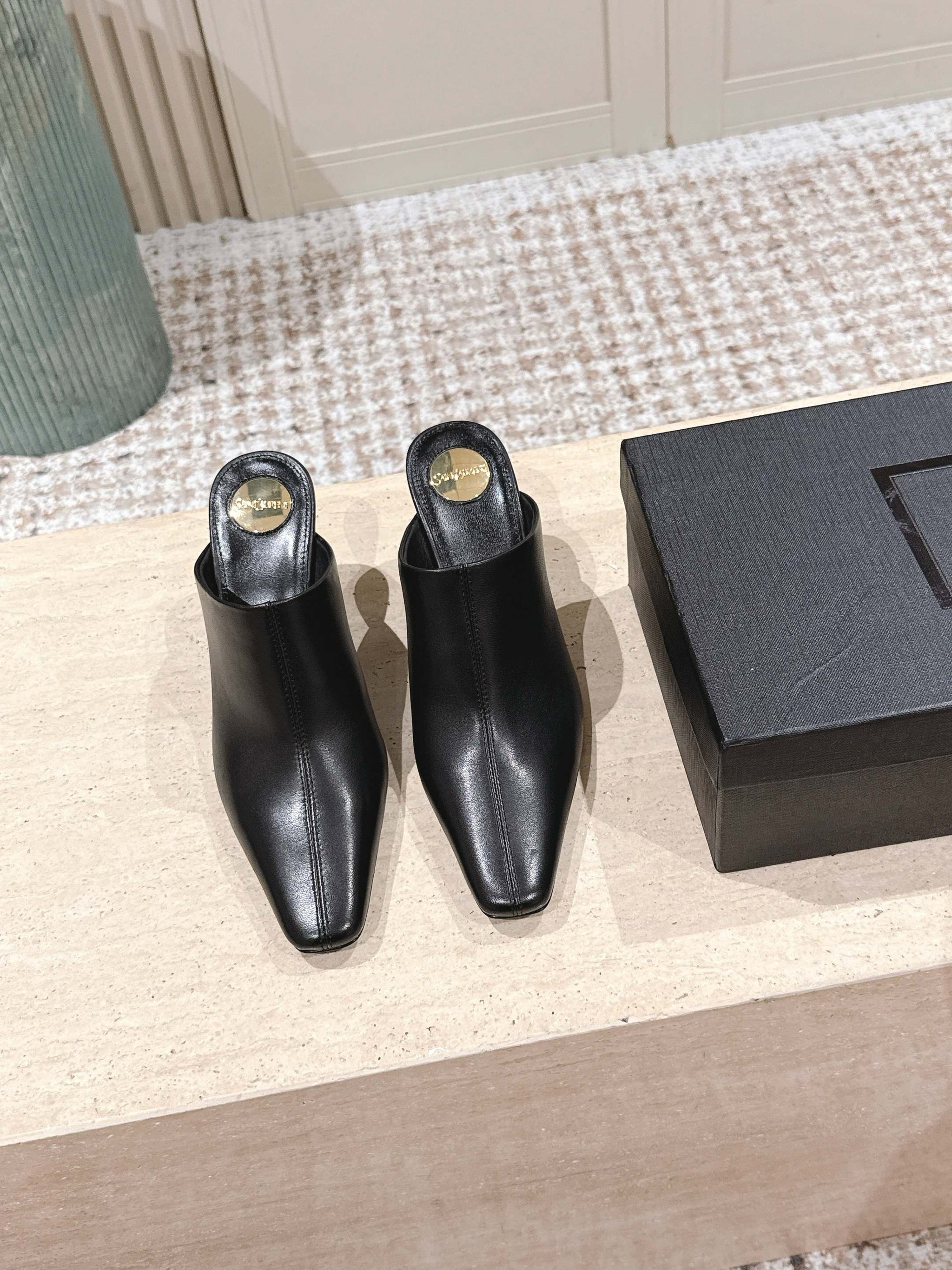 YSL 25S JILL MULES IN BLACK SMOOTH CALFSKIN