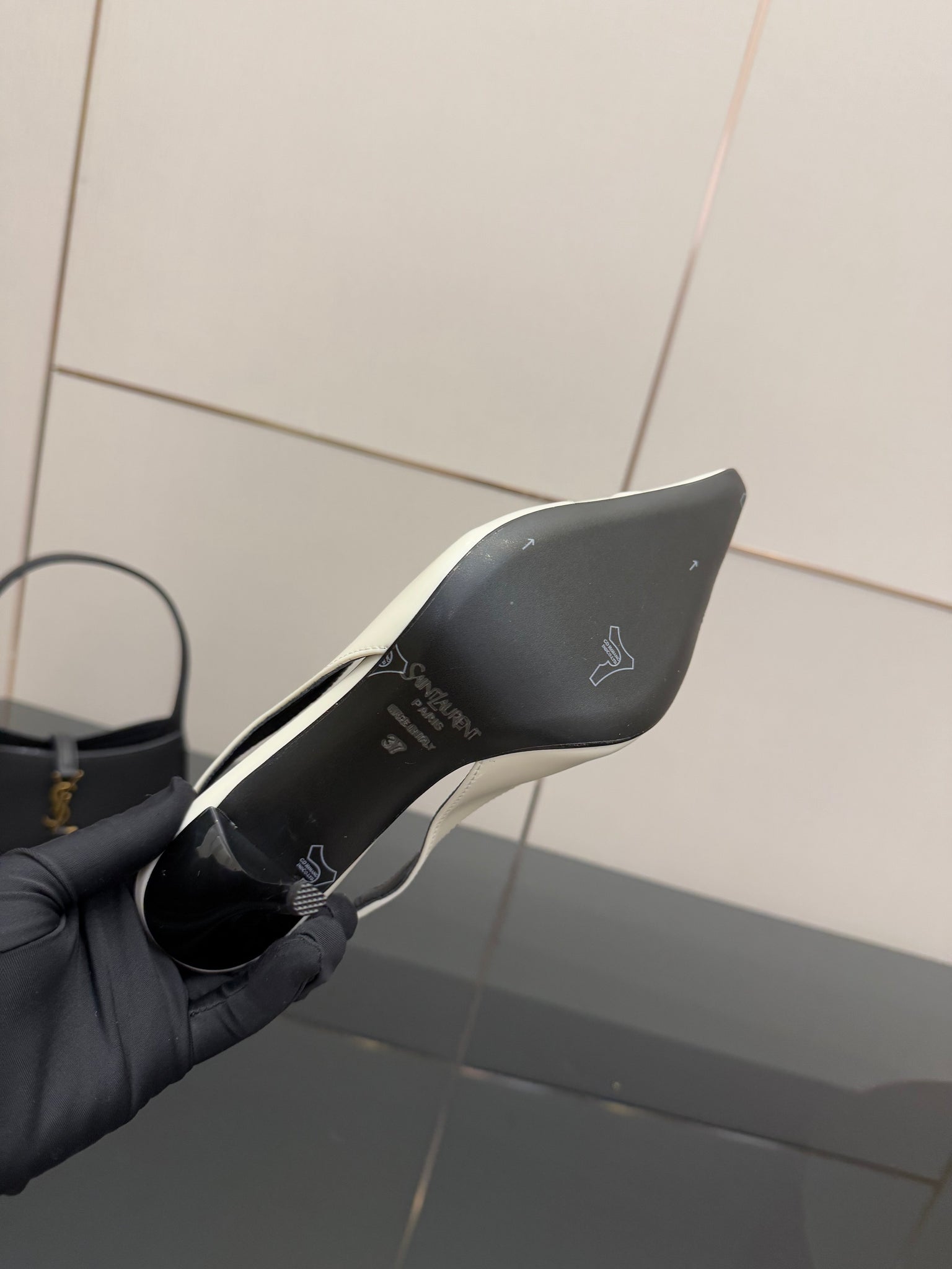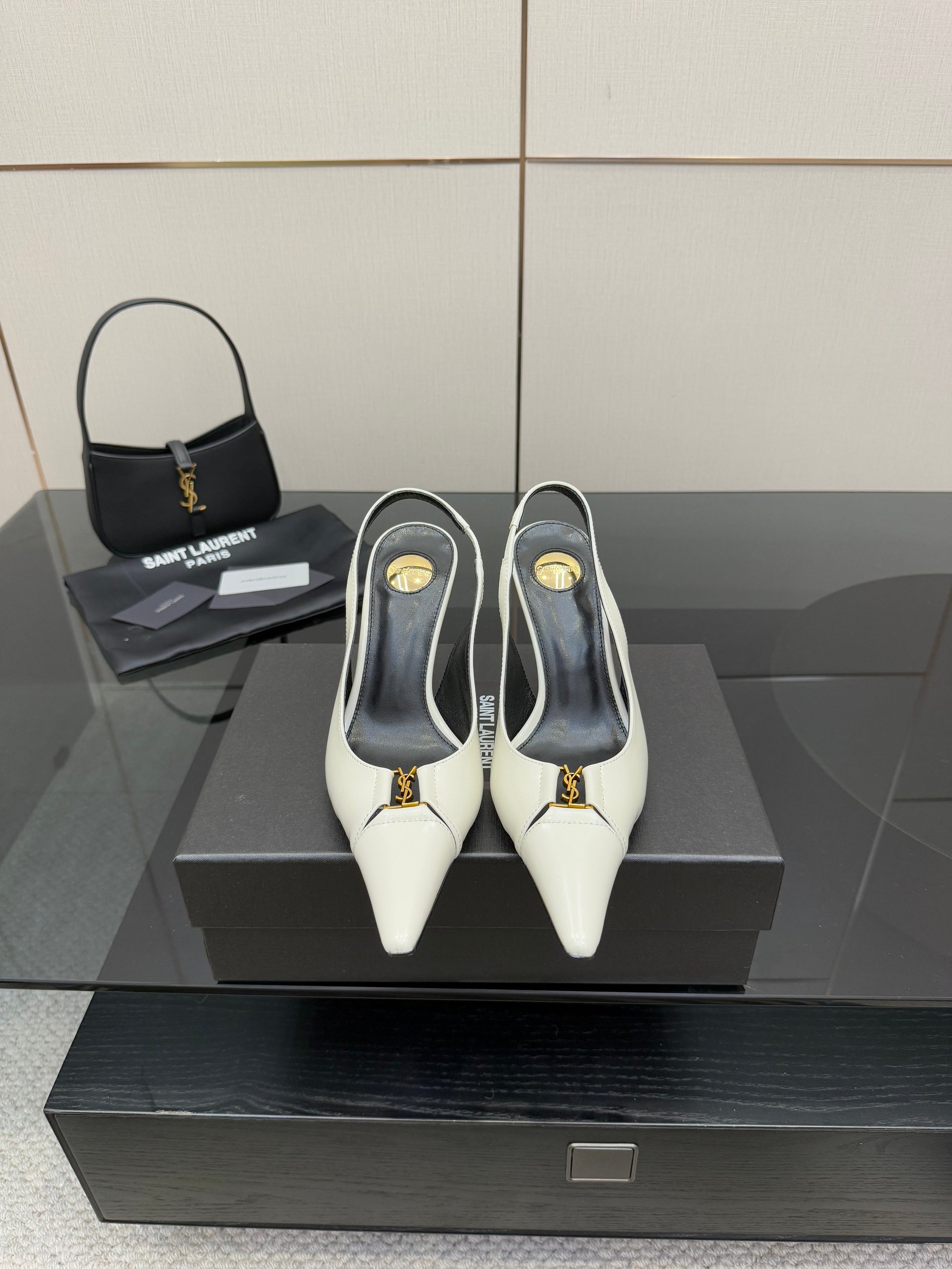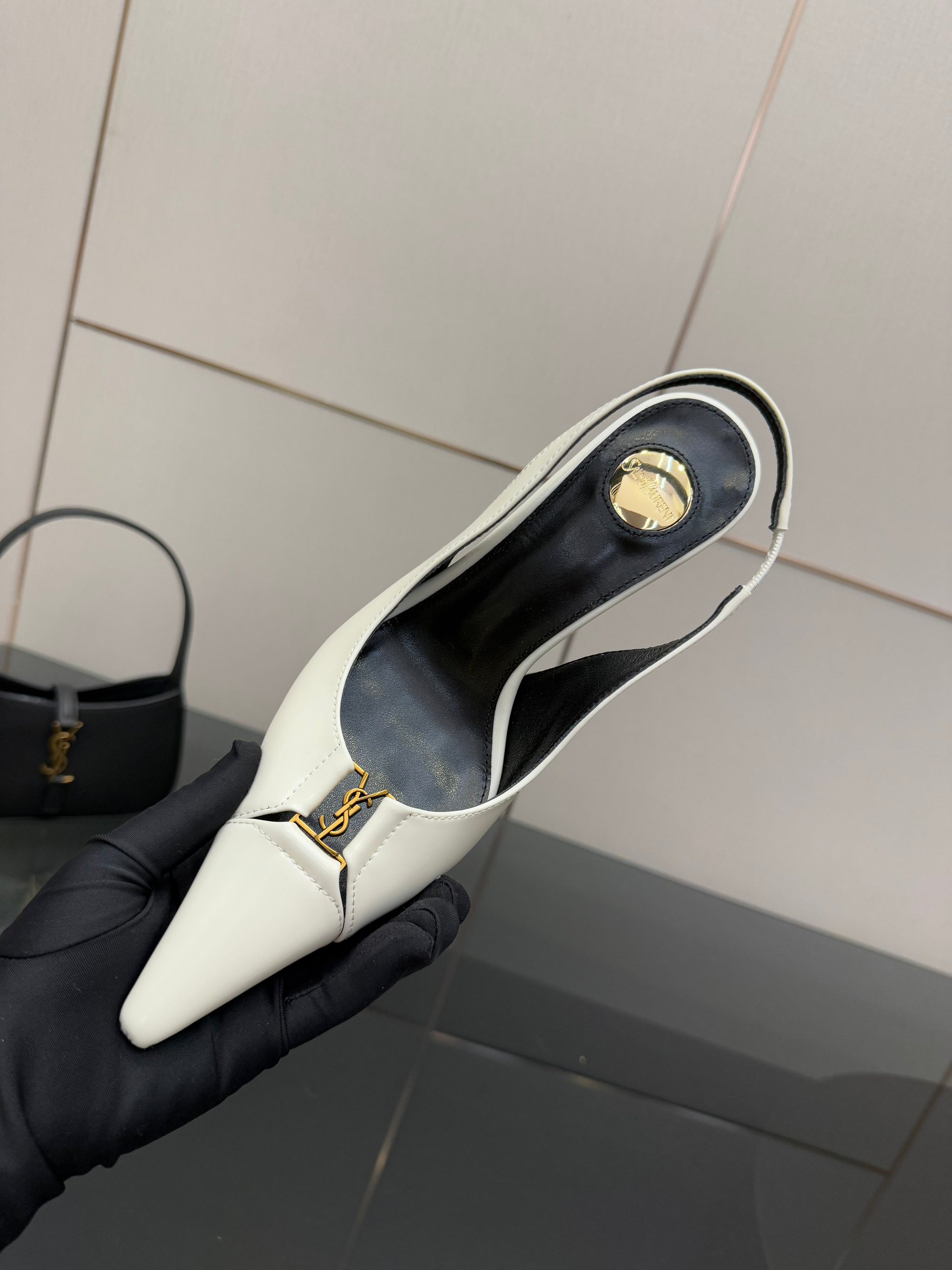 YSL 25S SLINGBACK HIGH HEELS 90 MM IN WHITE LAMBSKIN WITH GOLD HARDWARE STYLE 6