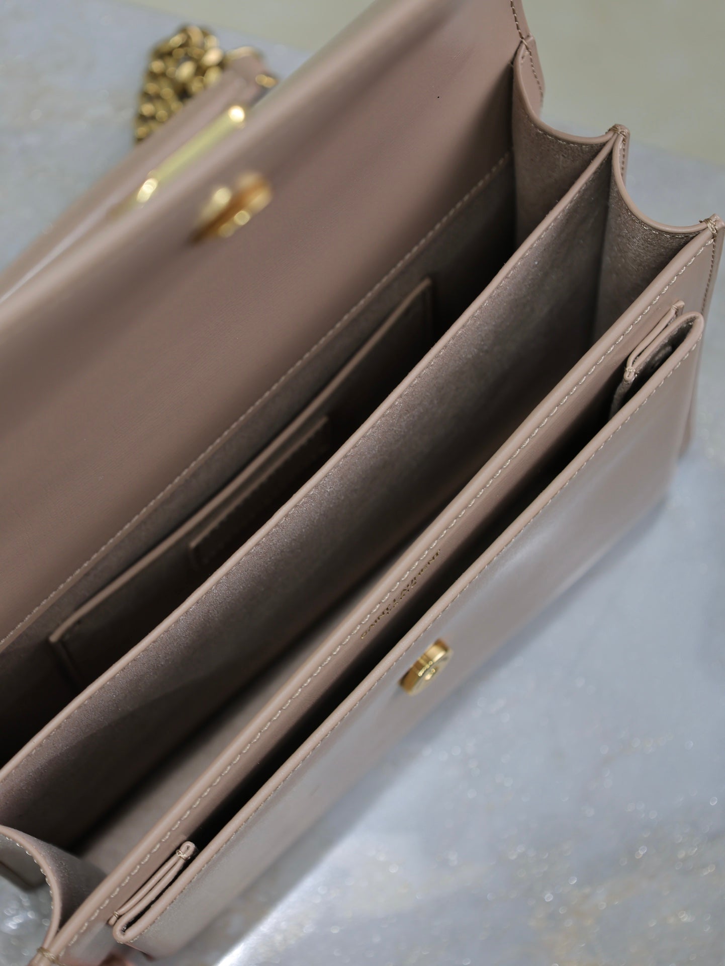 YSL 25S SUNSET BAG 22 IN WARM TAUPE PINK CALFSKIN GOLD HARDWARE