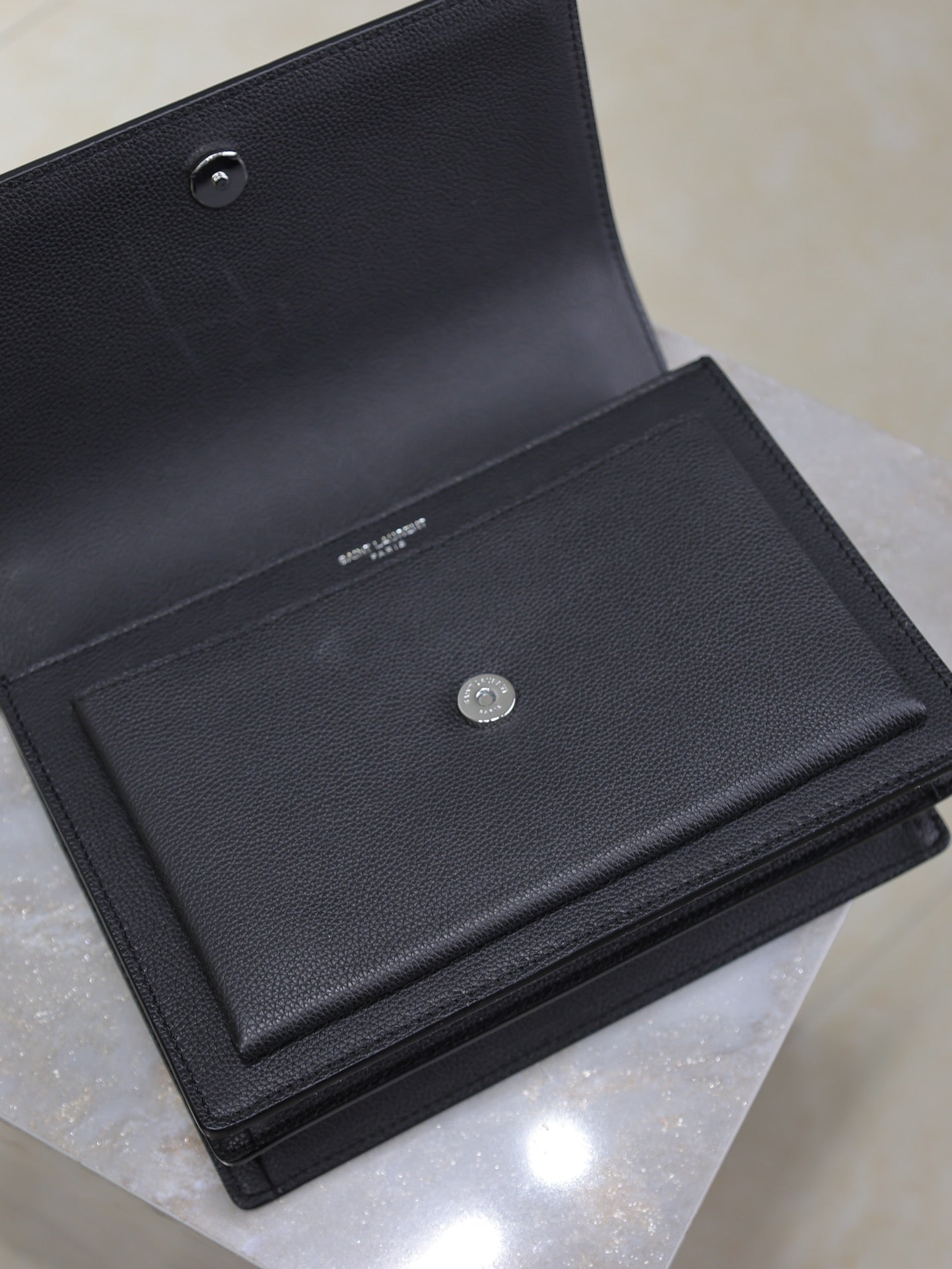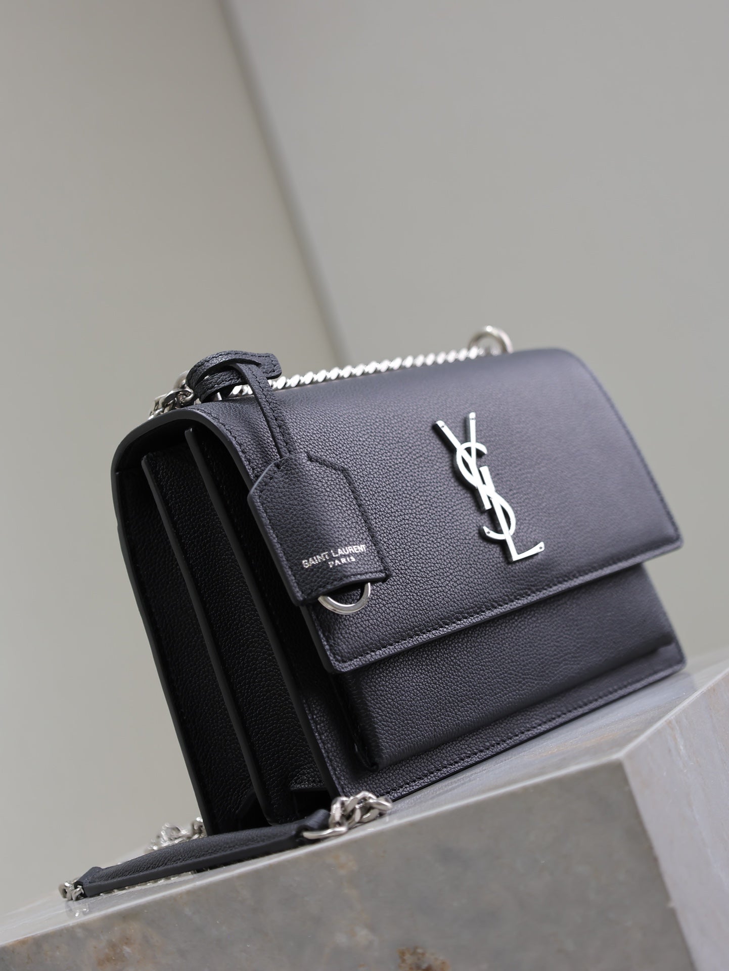 YSL 25S SUNSET MEDIUM 22 IN BLACK GRAINED CALFSKIN SILVER HARDWARE