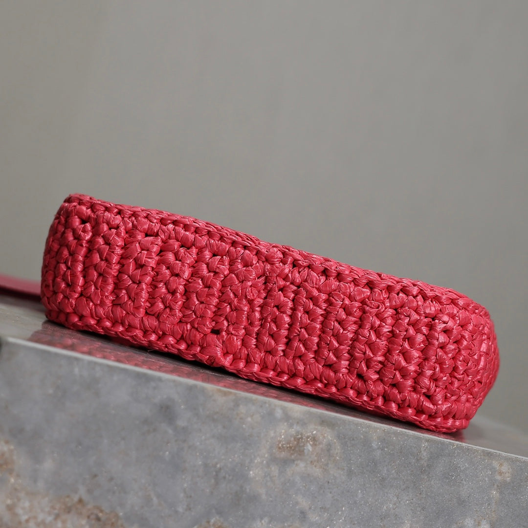 LE 5 À 7 BAG 19 IN MAGENTA PINK WOVEN RAFFIA