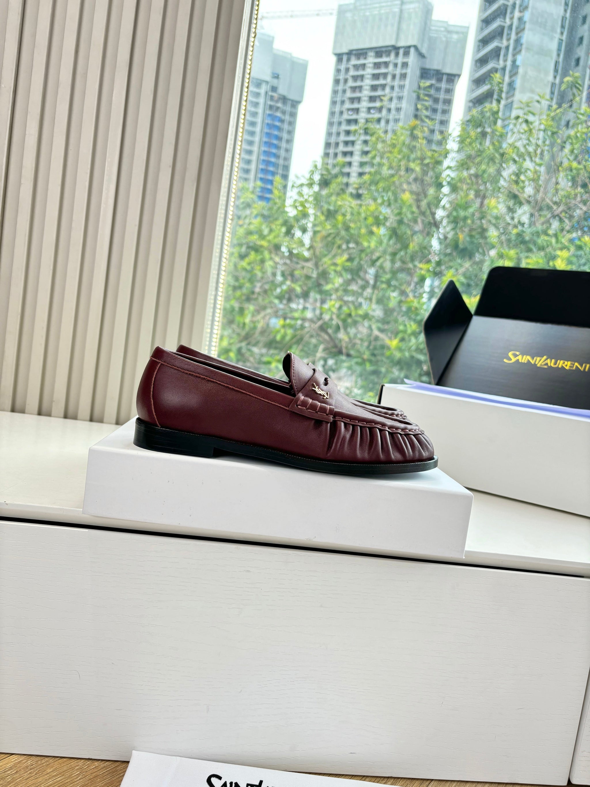 YSL 25S LOAFERS IN DARK RED LAMBSKIN