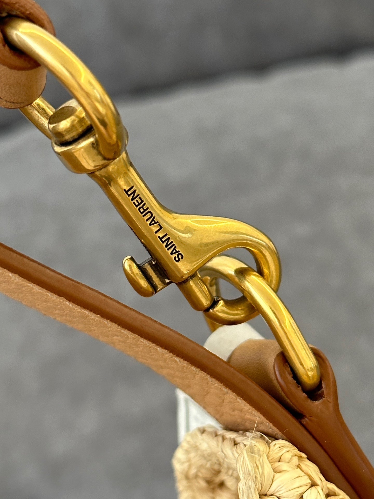 OXALIS 40 IN RAFFIA CROCHET AND LEATHER VINTAGE BROWN