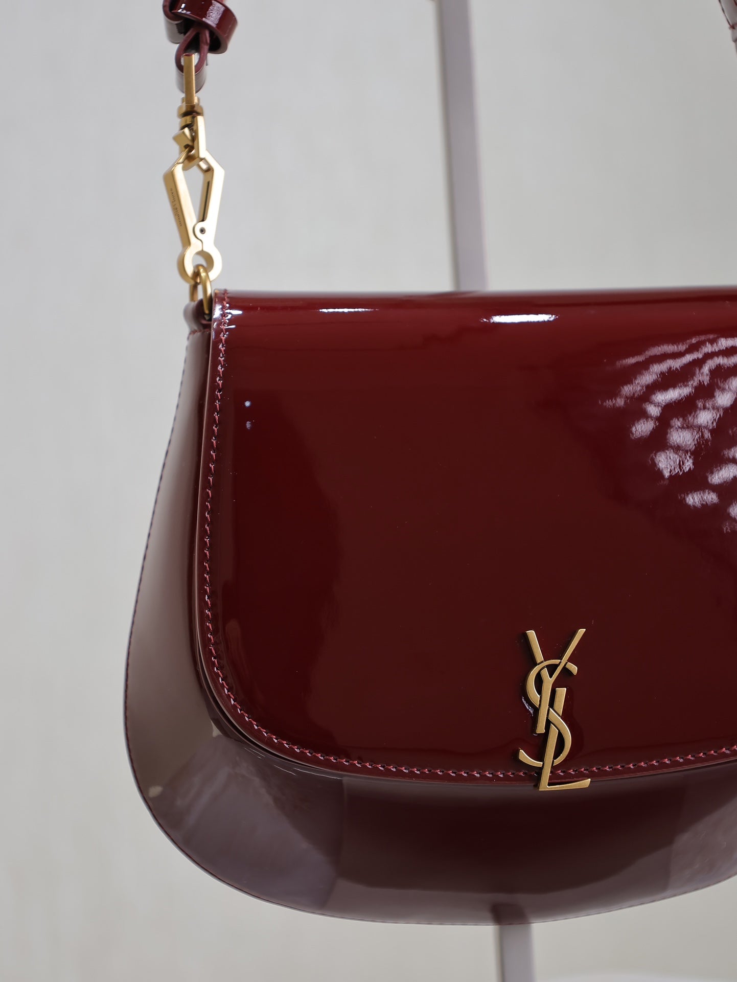 VOLTAIRE SADDLE BAG 21 IN BORDEAUX RED PATENT CALFSKIN