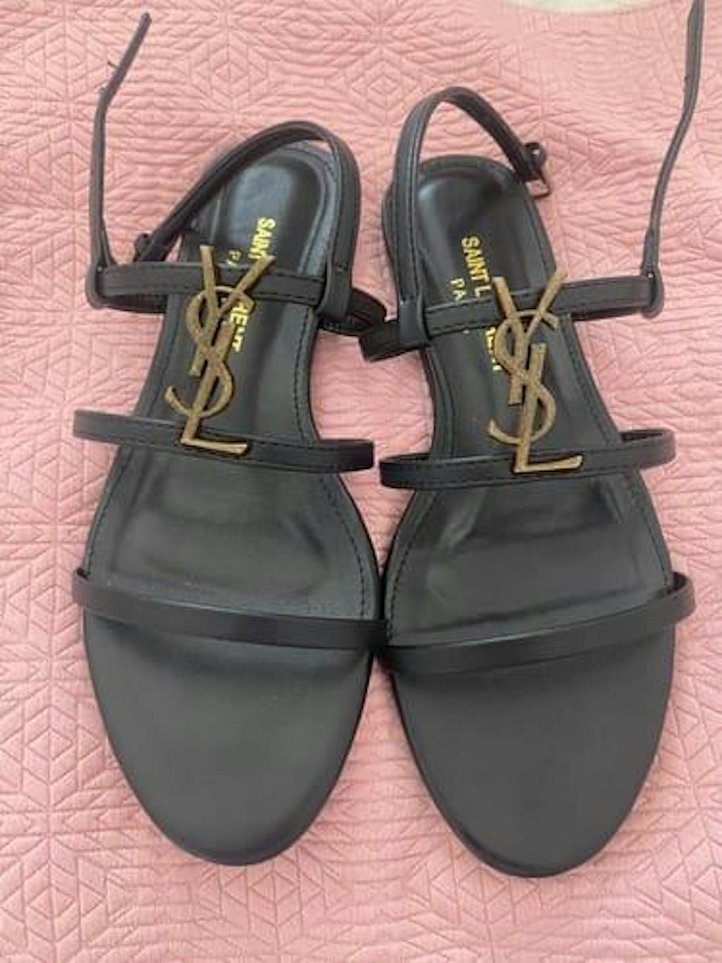 SL CASSANDRA FLAT SANDALS BLACK CALFSKIN