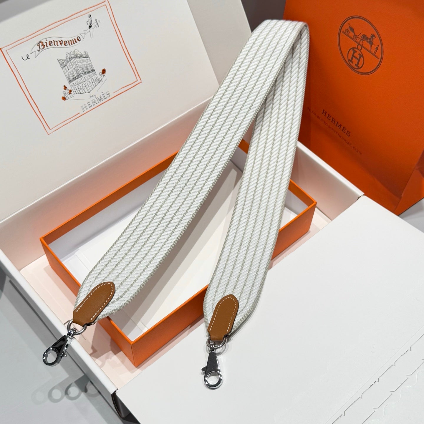25S HERMES BAG STRAP GRAY AND WHITE PATTERN 85 IN CANVAS SILVER HARDWARE