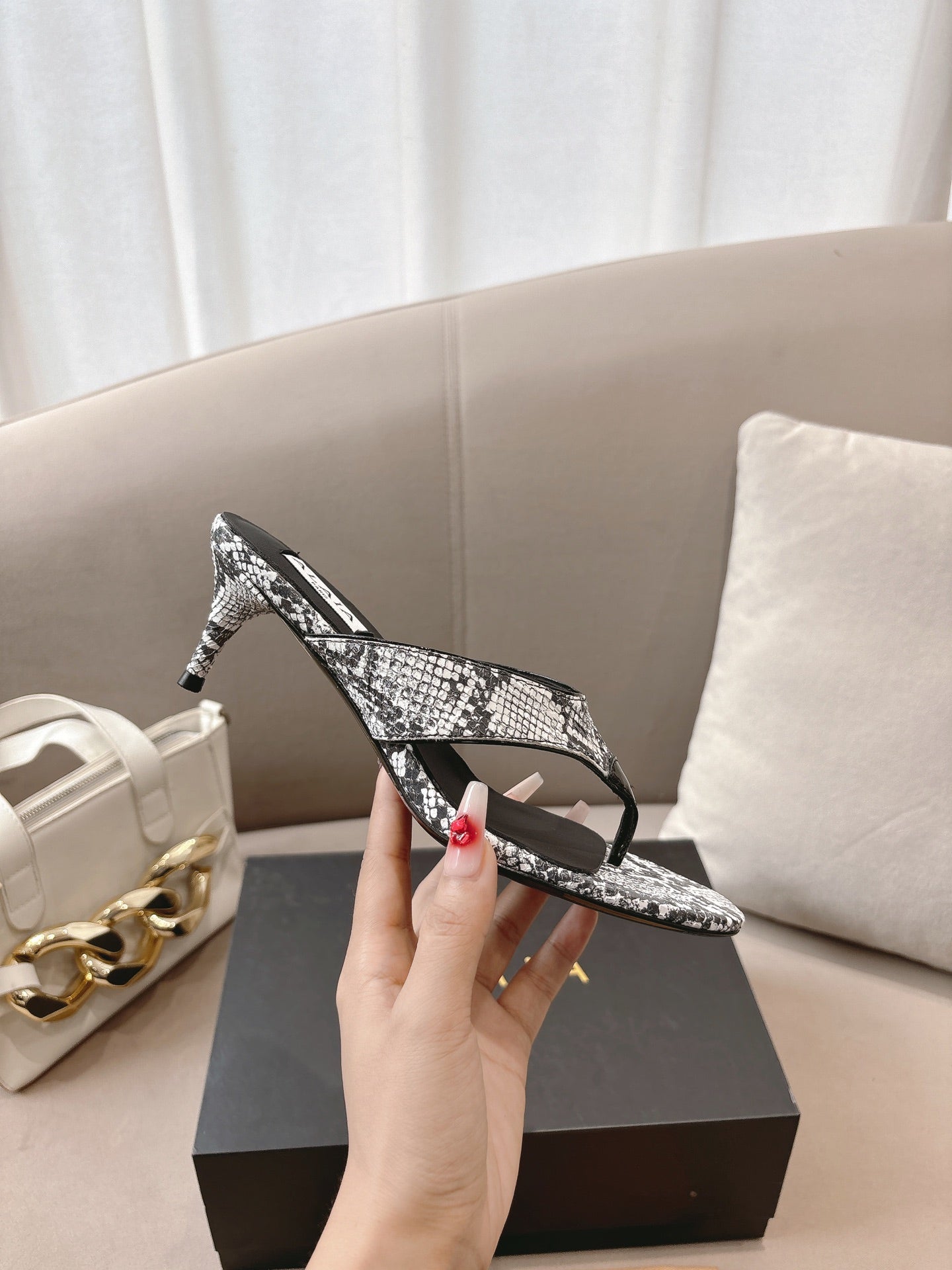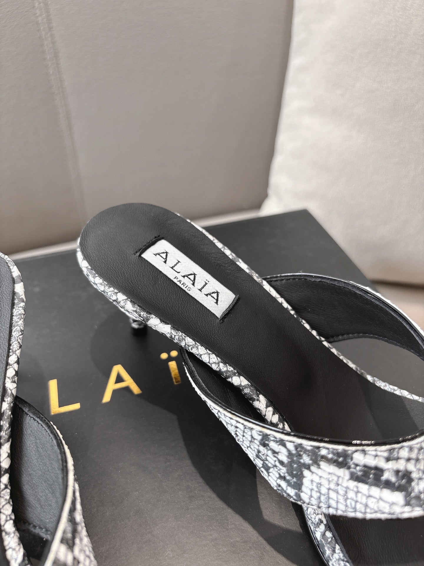 ALAIA HEELED THONG SANDALS 25S 55MM IN WHITE AND BLACK LAMBSKIN SNAKE-EMBOSSED