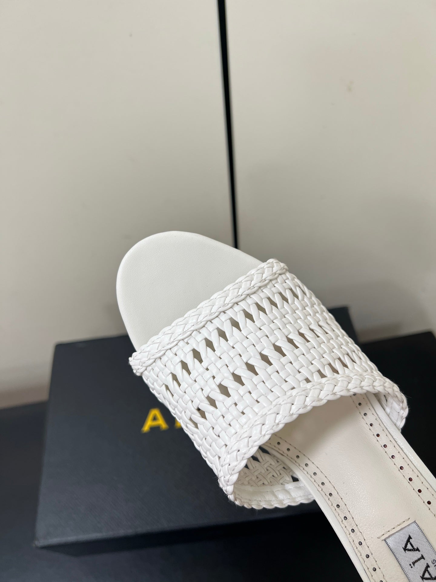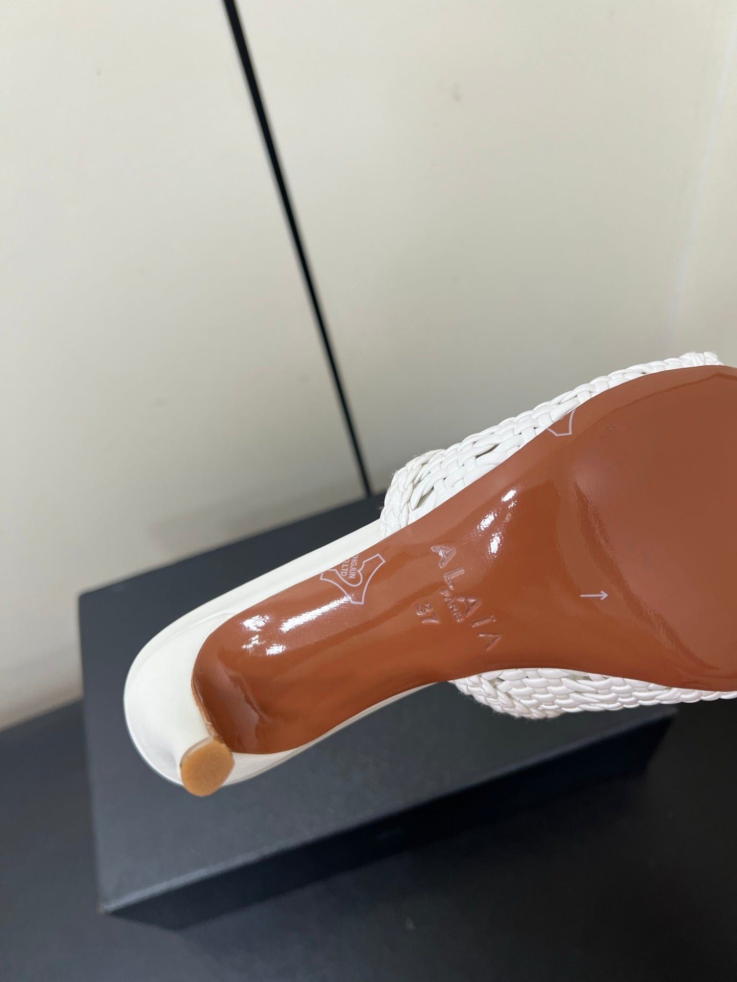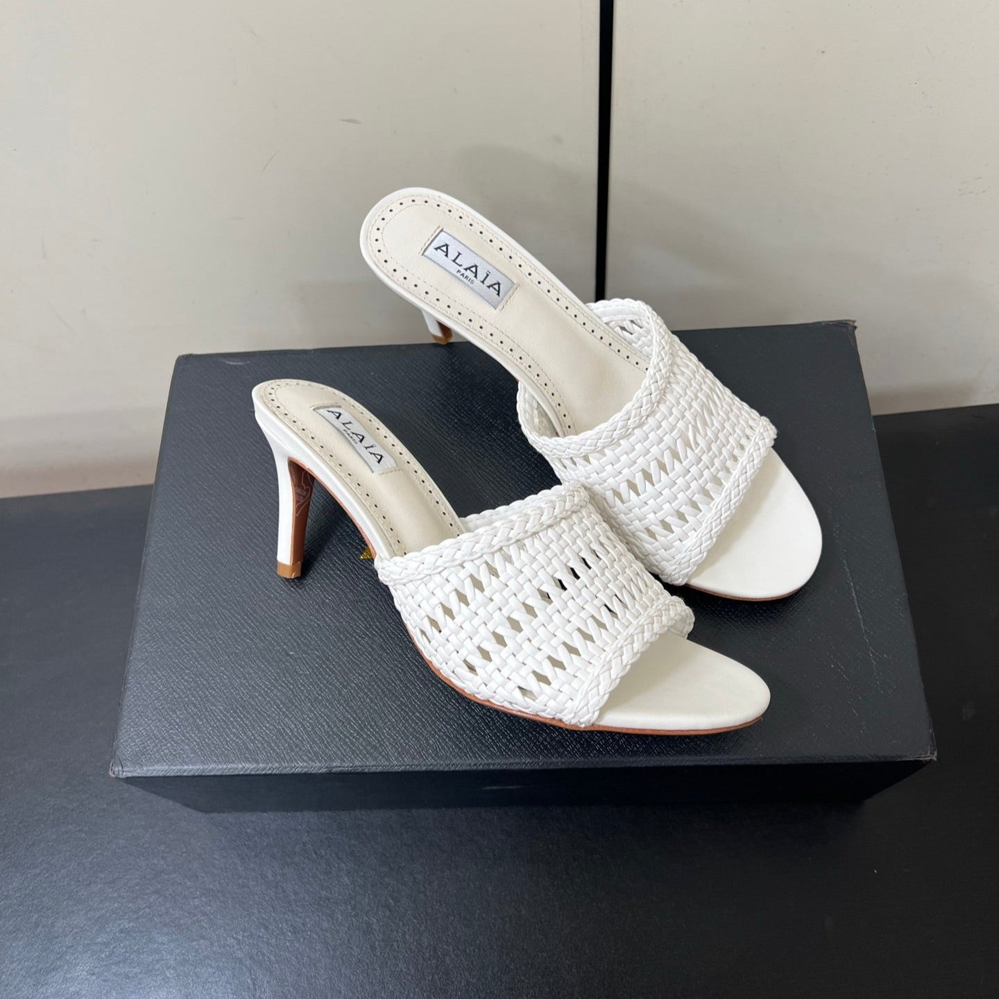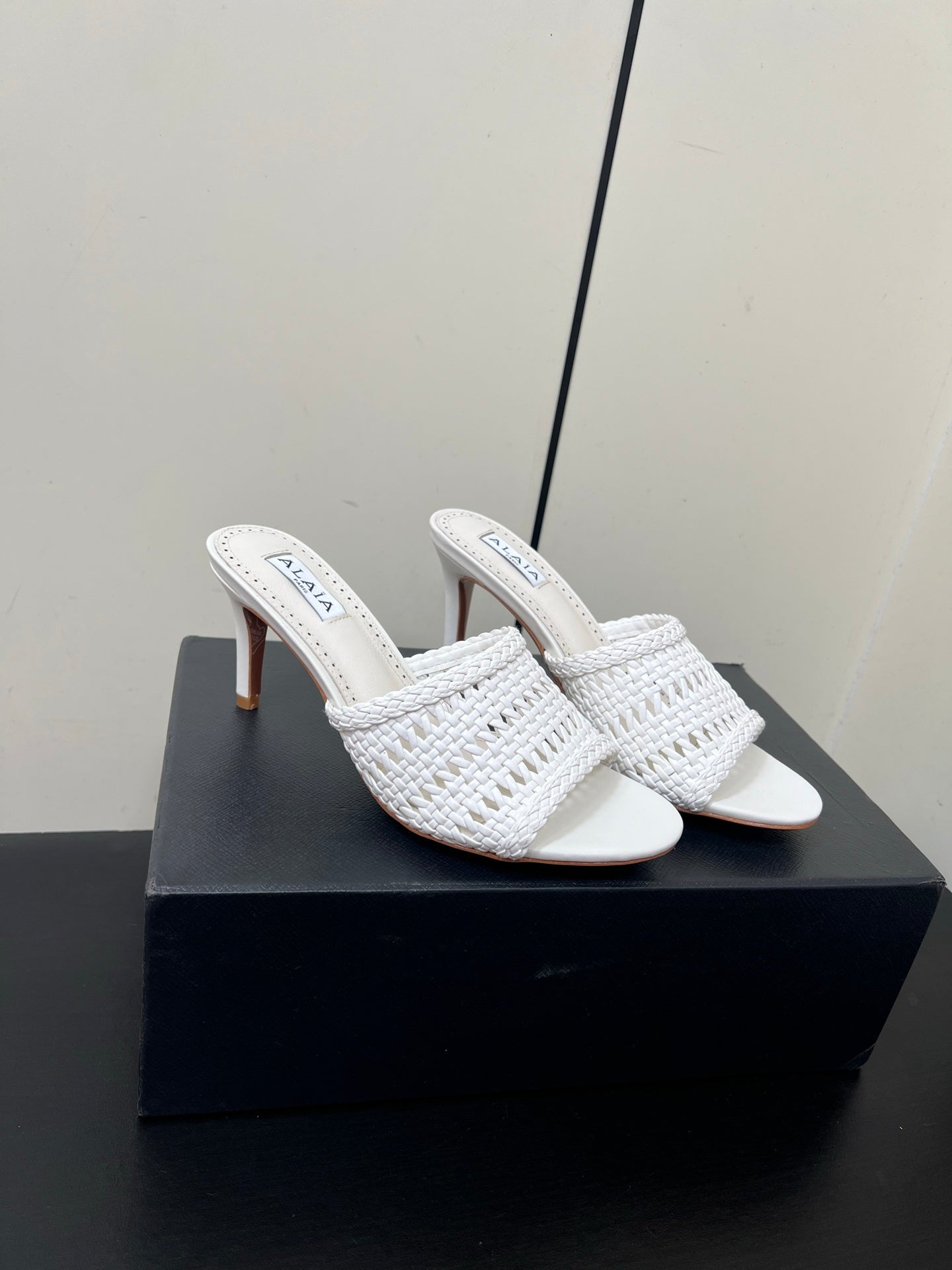 ALAIA HIGH HEEL 25S 70 MM IN WHITE LAMBSKIN WITH WOVEN PATTERN