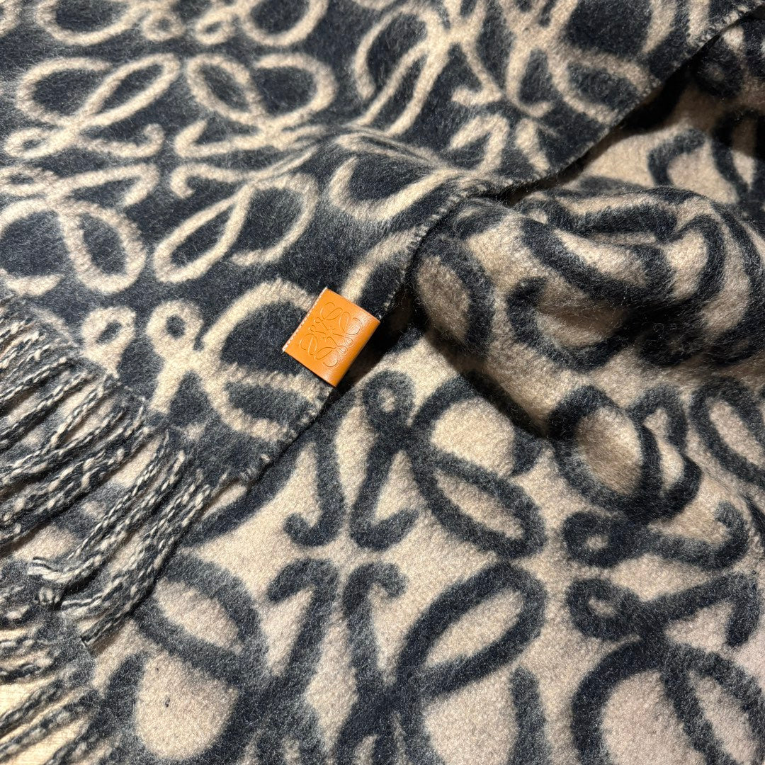 ANAGRAM 200 CM SCARF IN BLACK MIX BEIGE ALPACA AND WOOL 411850