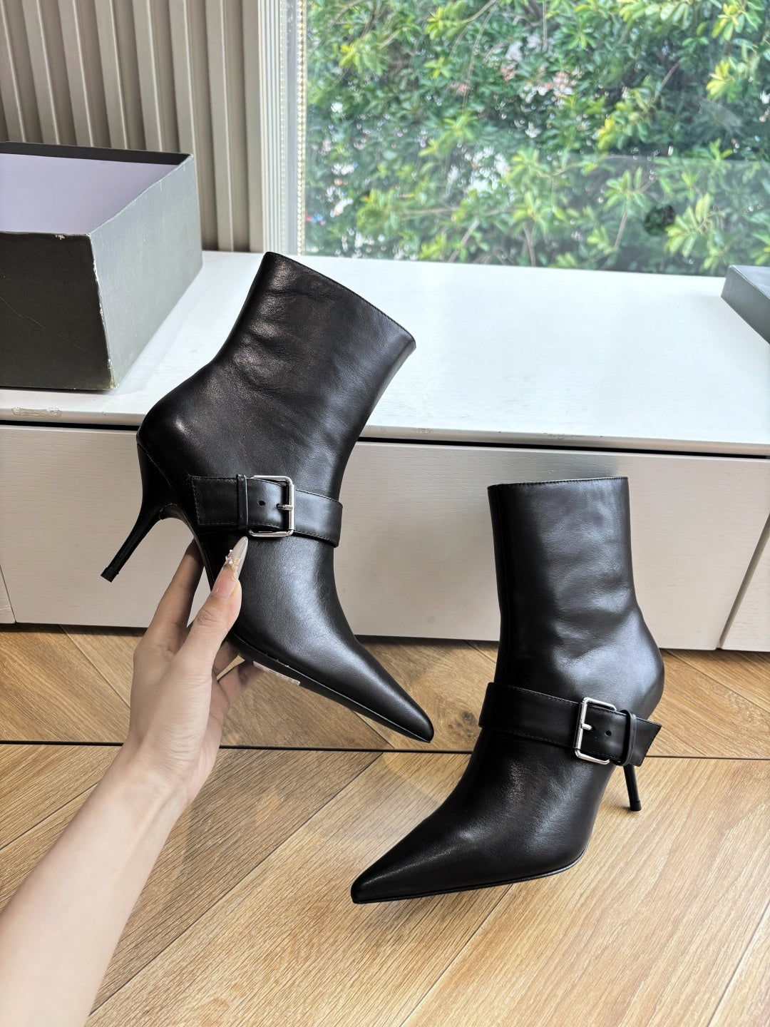 BALENCIAGA 25S ANKLE BOOTS WITH ZIPPER IN BLACK COW LEATHER SILVER HARDWARE
