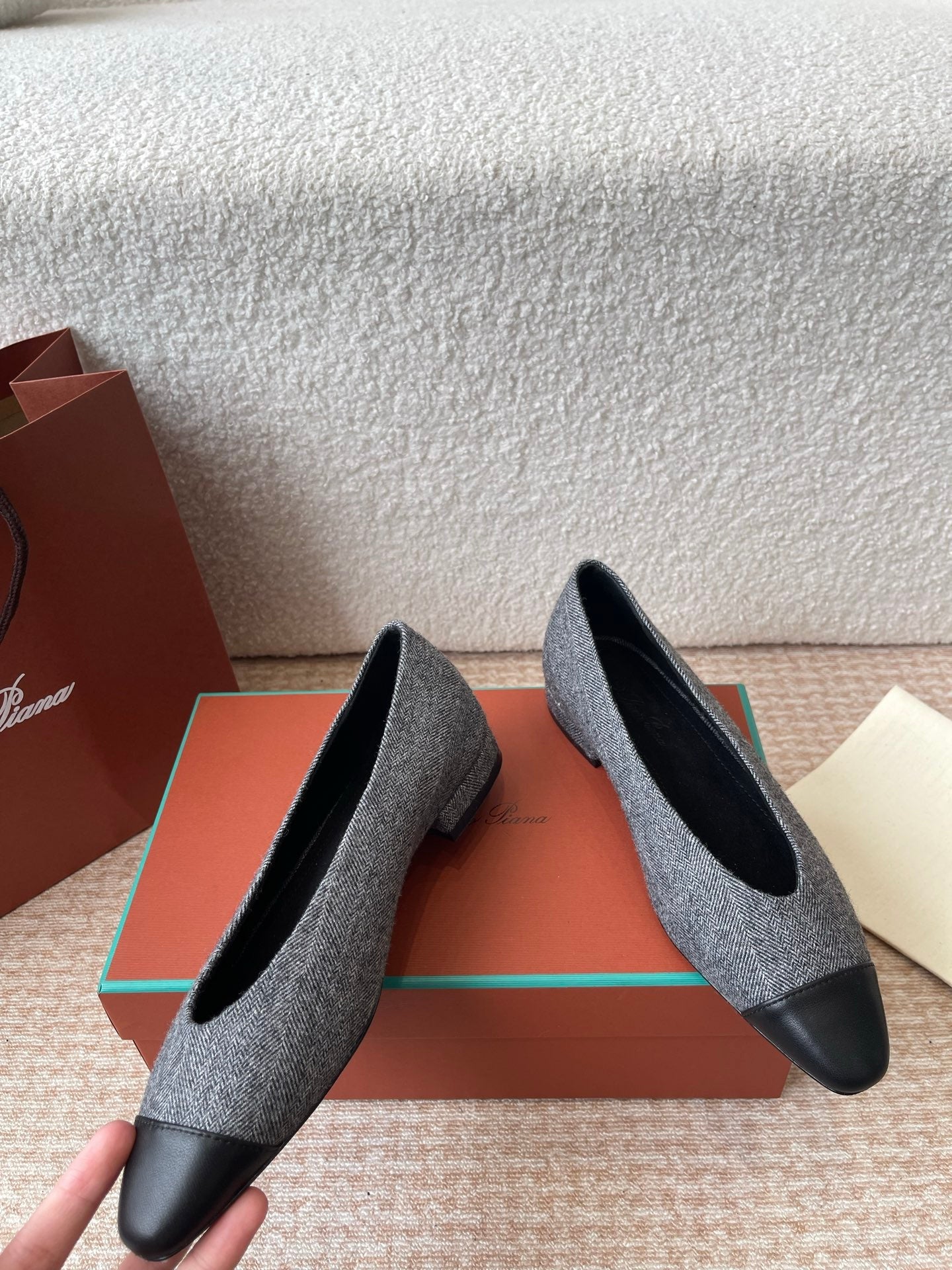 BALLET IN GREY TWEED MIX BLACK LAMBSKIN