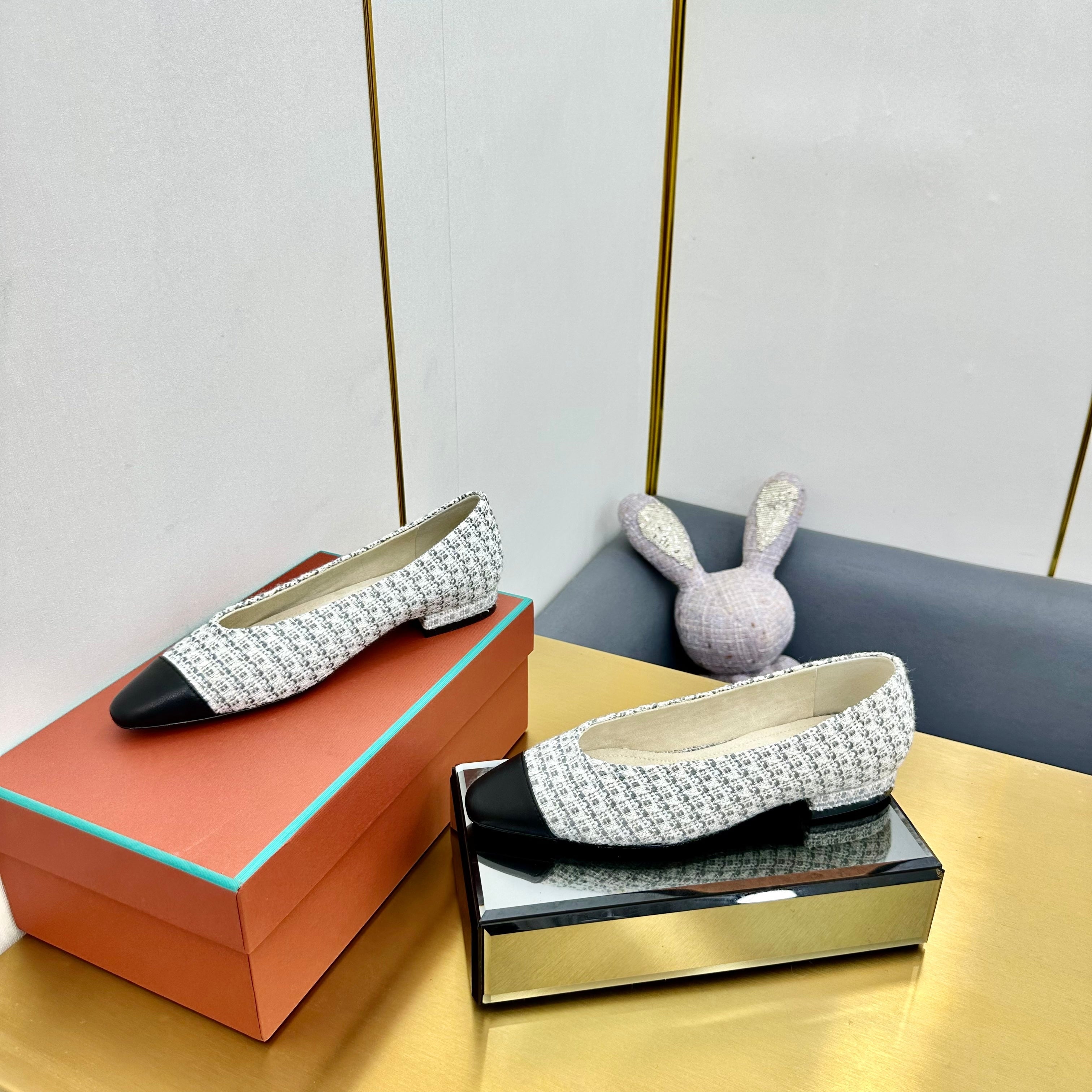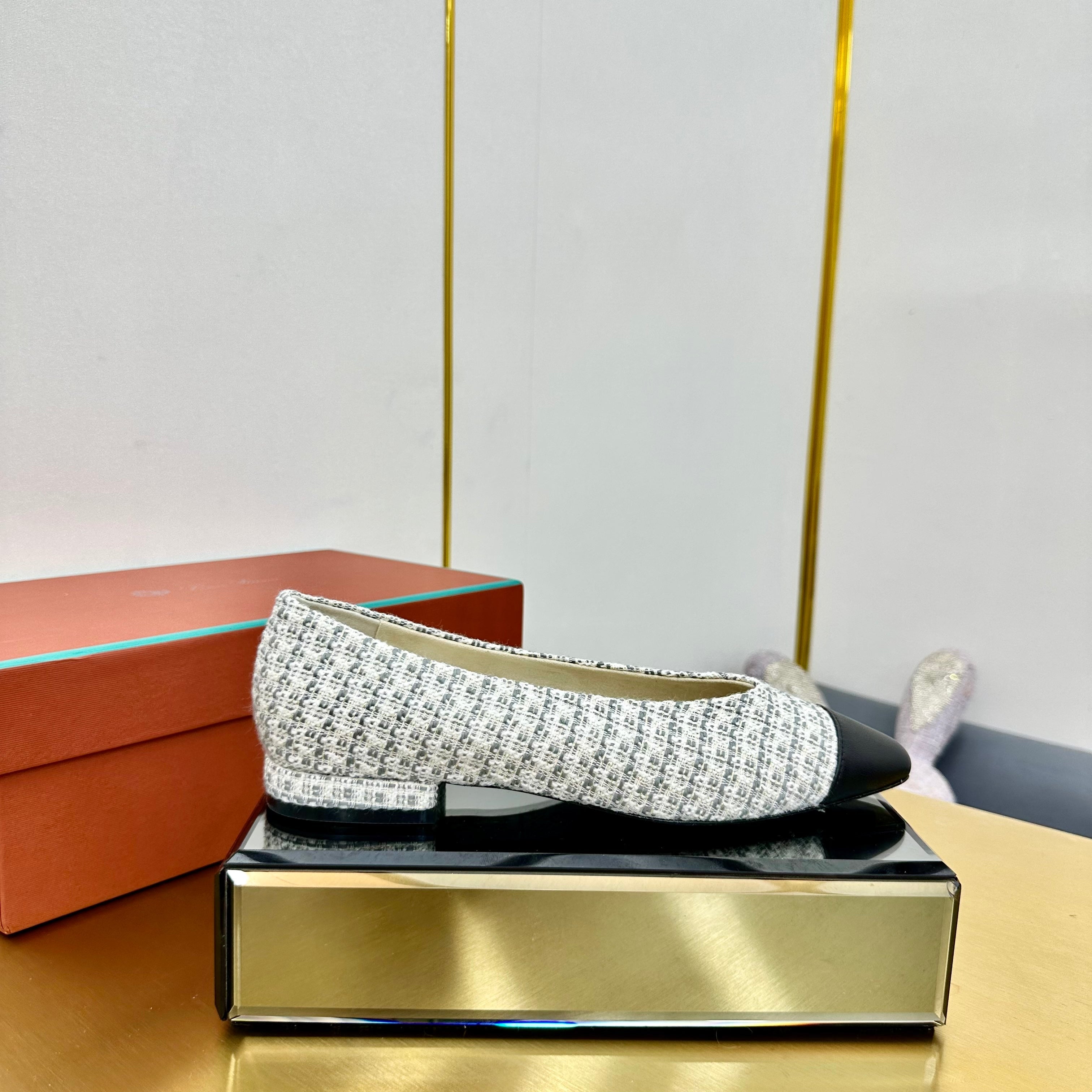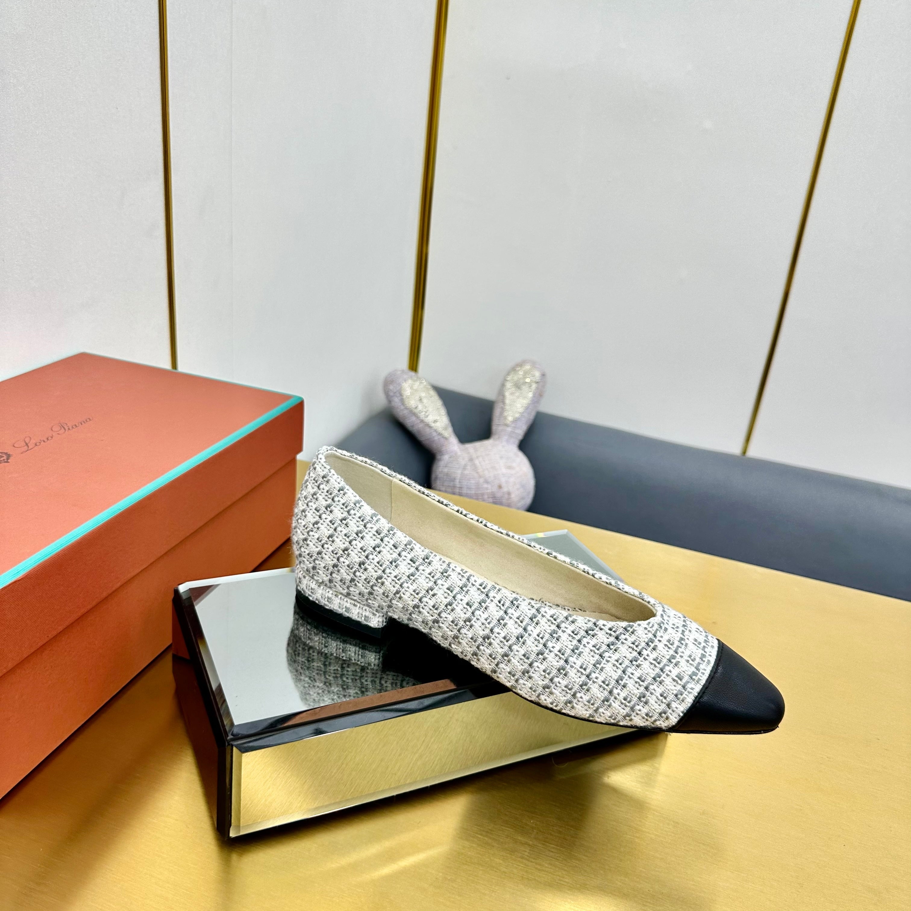 BALLET IN WHITE TWEED MIX BLACK LAMBSKIN
