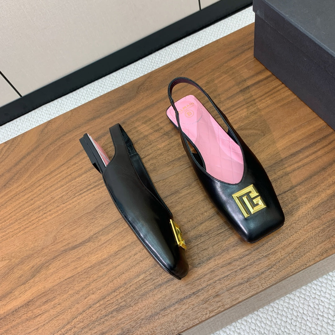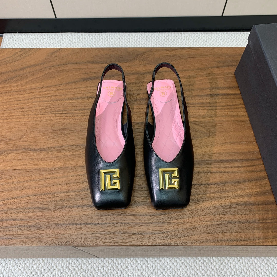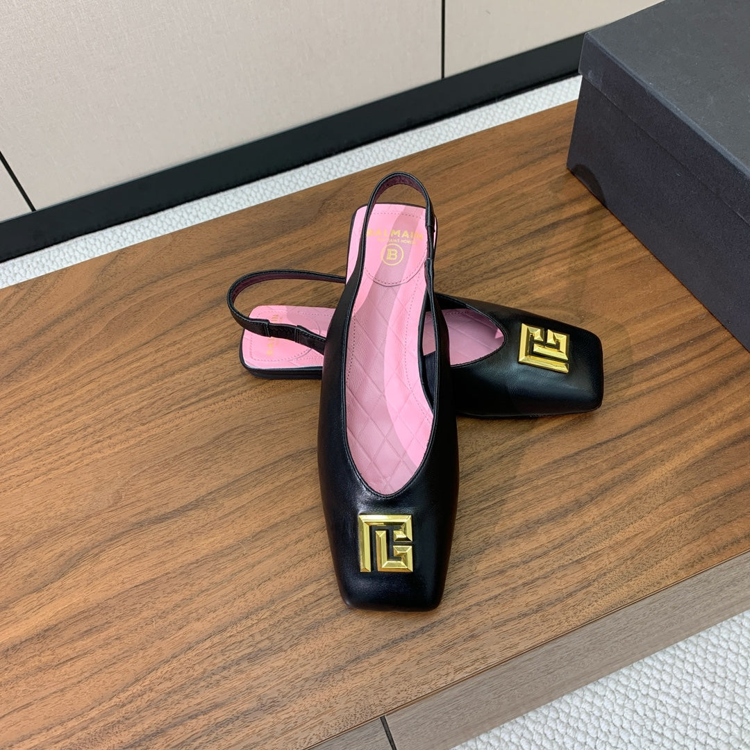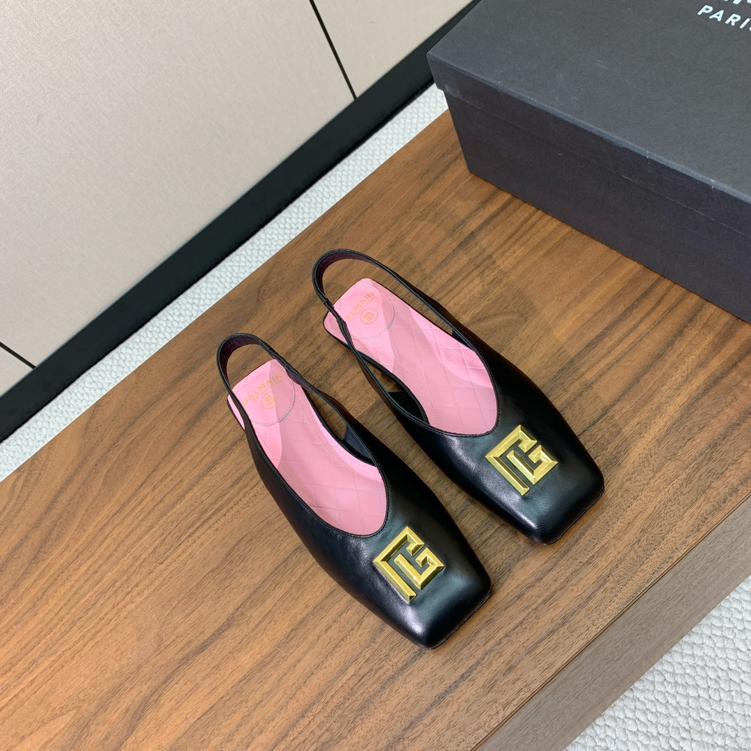 BALMAIN 25S FLAT EDEN SLINGBACKS IN BLACK CALFSKIN
